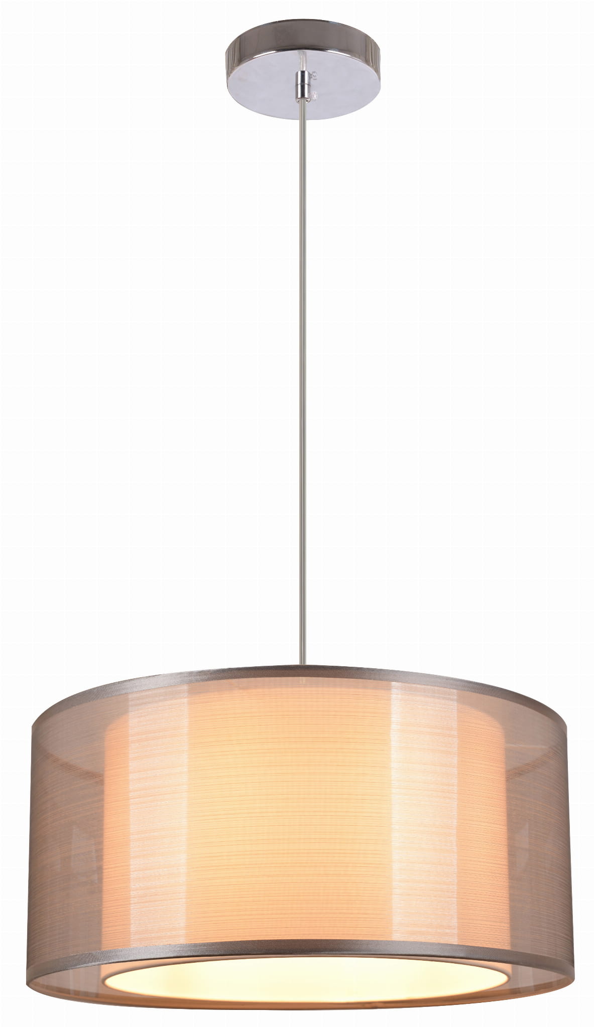 Martina - lampa wisząca 1 płomienna chrom. 1xE27 60W. Wysokość 15cm. Wysokość całkowita 100cm. Szerokość 30cm. Głębokość 40cm. Abażur wewnętrzny biały z materiału, zewnętrzny szary z tworzywa sztucznego