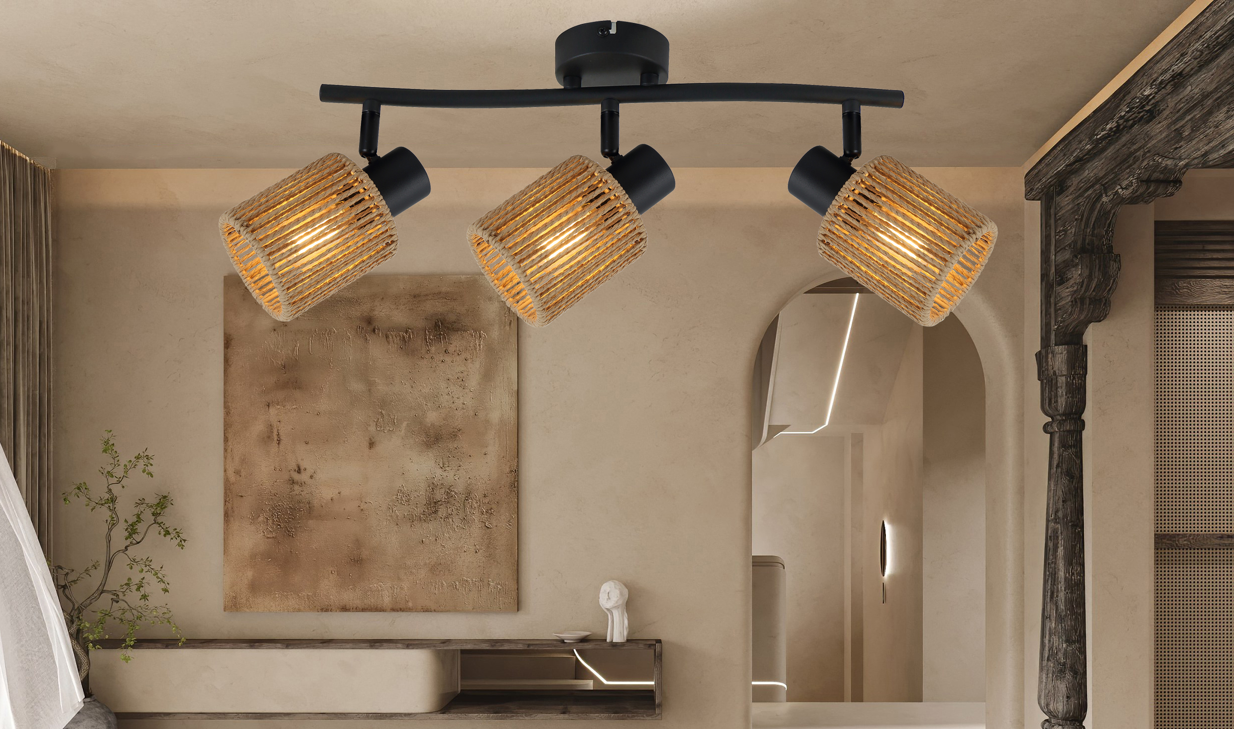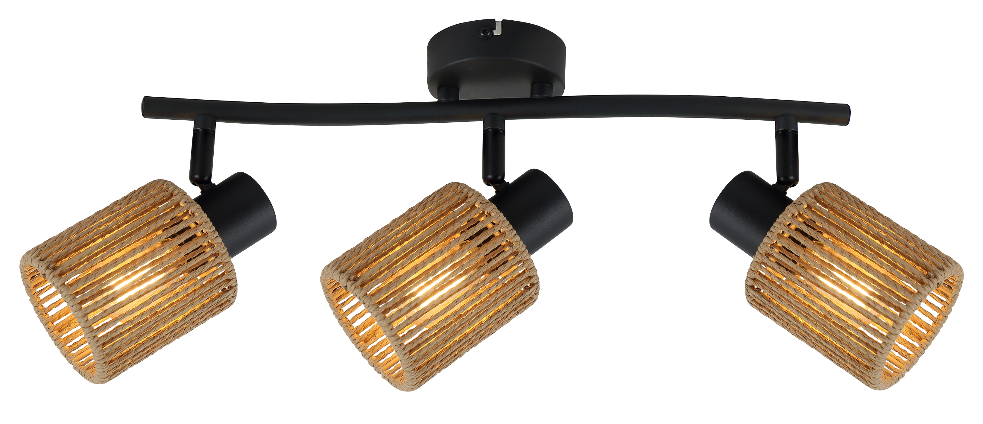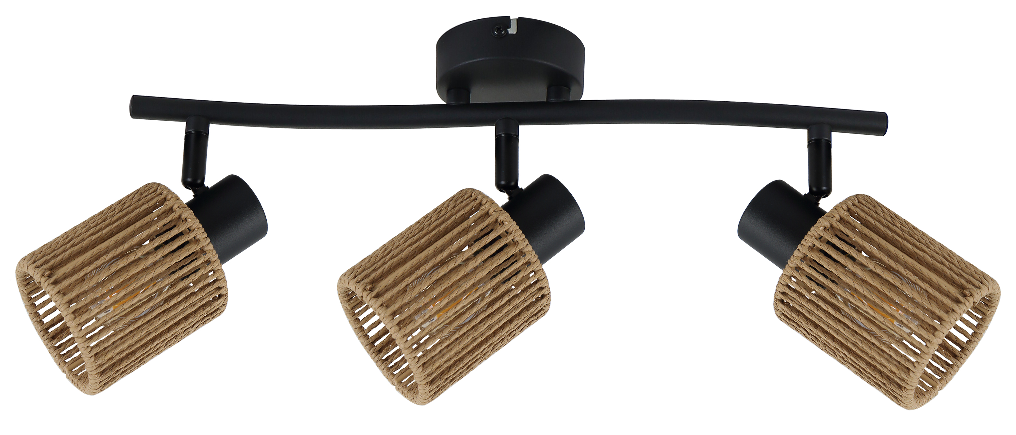 Arila listwa czarny mat. 3xE14 40W. Wysokość 14,5cm. Szerokość 40cm. Głębokość 9cm. Abażury z papierowego sznurka