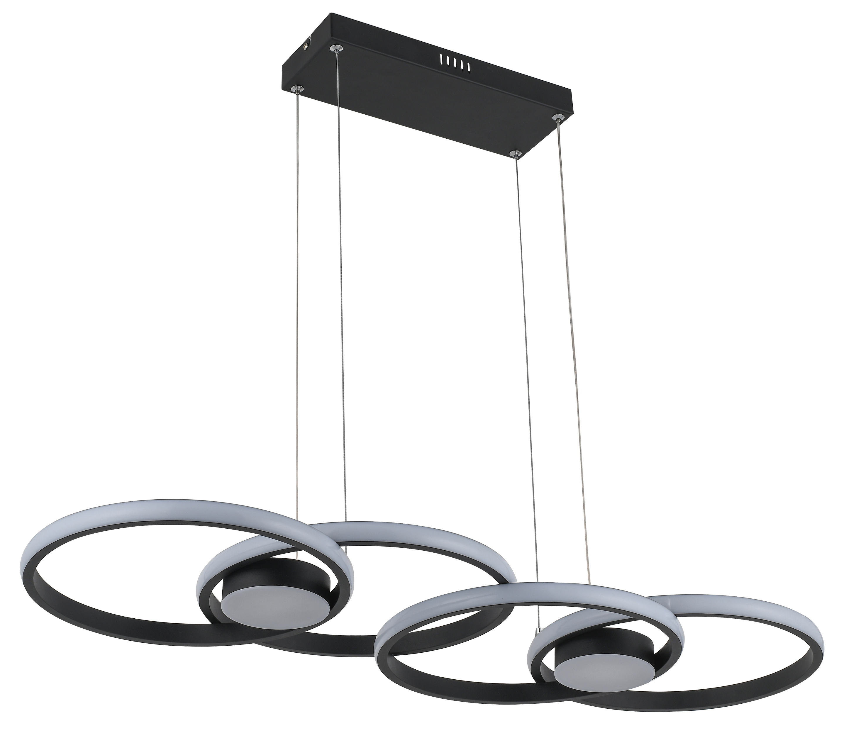 Audia - lampa wisząca czarny mat. 1x48W LED 3840Lm 4000K. Wysokość 2cm. Wysokość całkowita 110cm. Szerokość 84cm. Głębokość 29cm. Klosze akryl. 5 lat gwarancji, serwis pogwarancyjny.