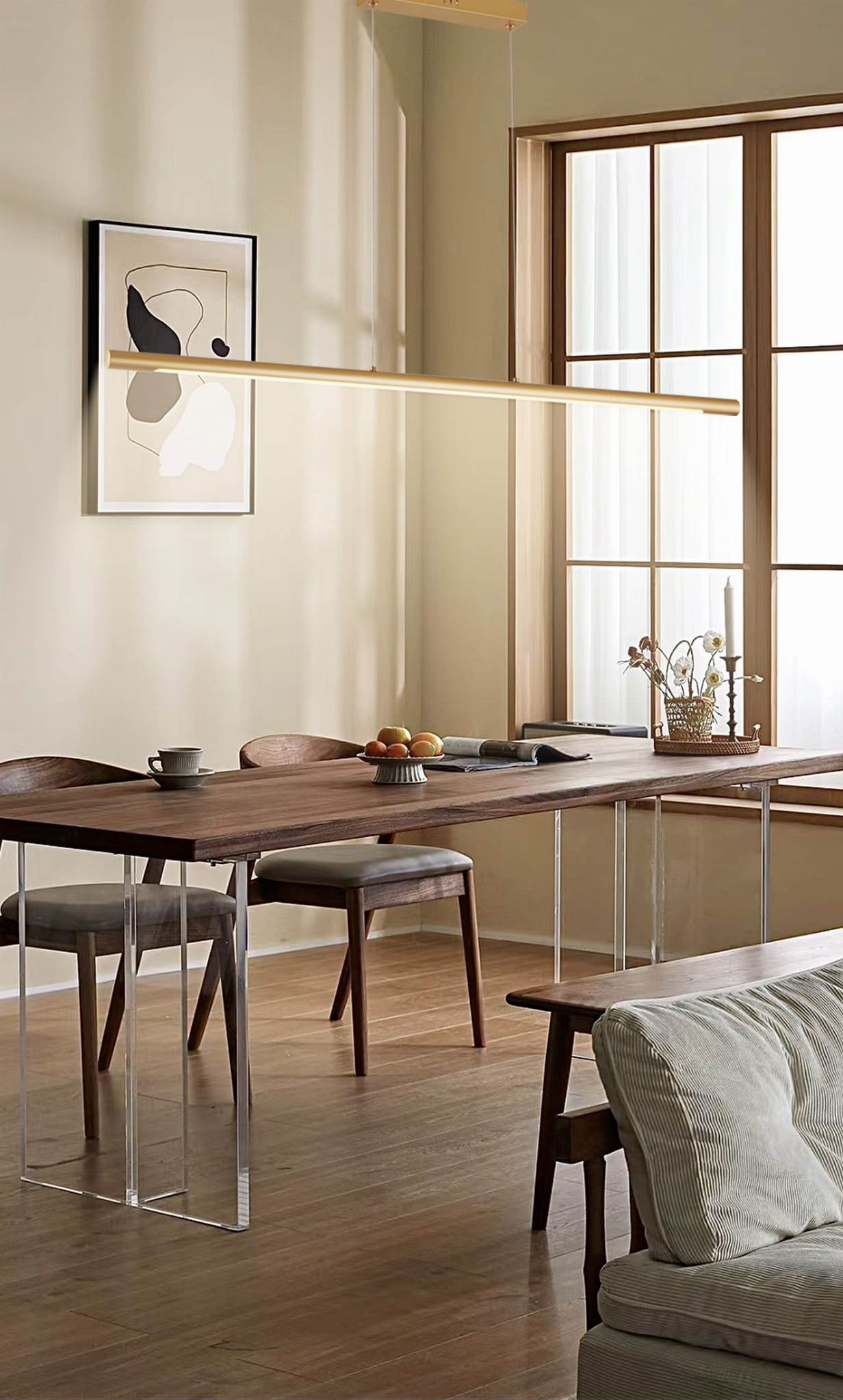 Branson - lampa wisząca złoty malowany. 1x18W 1440Lm 4000K. Wysokość 3cm. Wysokość całkowita 120cm. Szerokość 100cm. Głębokość 2,5cm. Klosz akryl. 5 lat gwarancji.