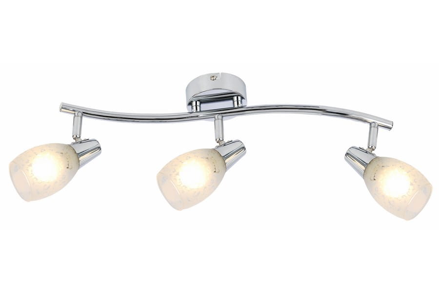 Crissy - listwa 3 płomienna chrom. 3xE14 40W. Wysokość 14cm. Szerokość 45cm. Głębokość 12cm. Klosze szklane mat floral