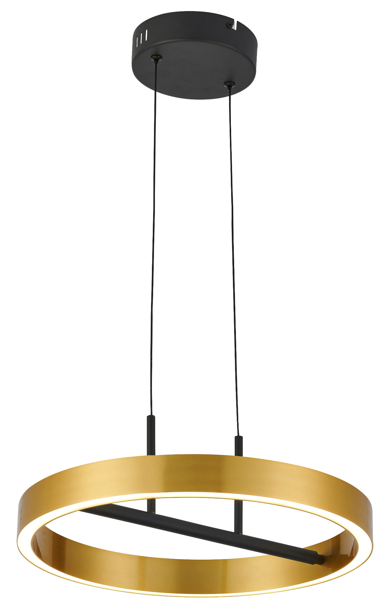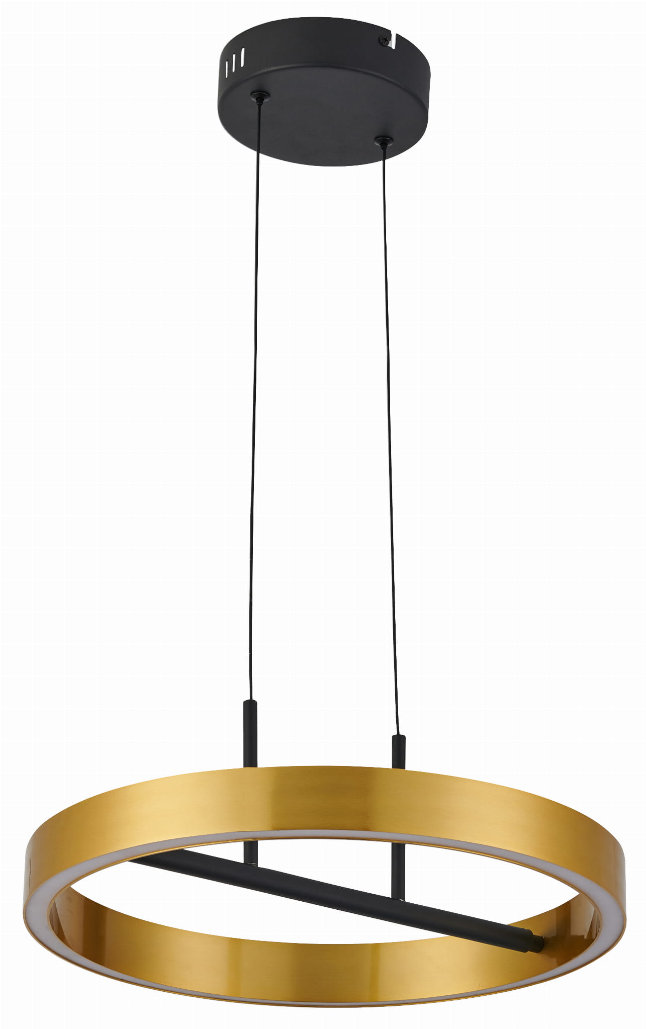 Coltrain - lampa wisząca czarny mat/ złoty galwanizowany. 1x32W LED 2560Lm. Zmienna temperatura światła 3000/3500/4000K. Wysokość 5cm. Wysokość całkowita 120cm. Szerokość 40cm. Głębokość 40cm. Światło do dołu i do góry. Klosz akryl. 5 lat gwarancji
