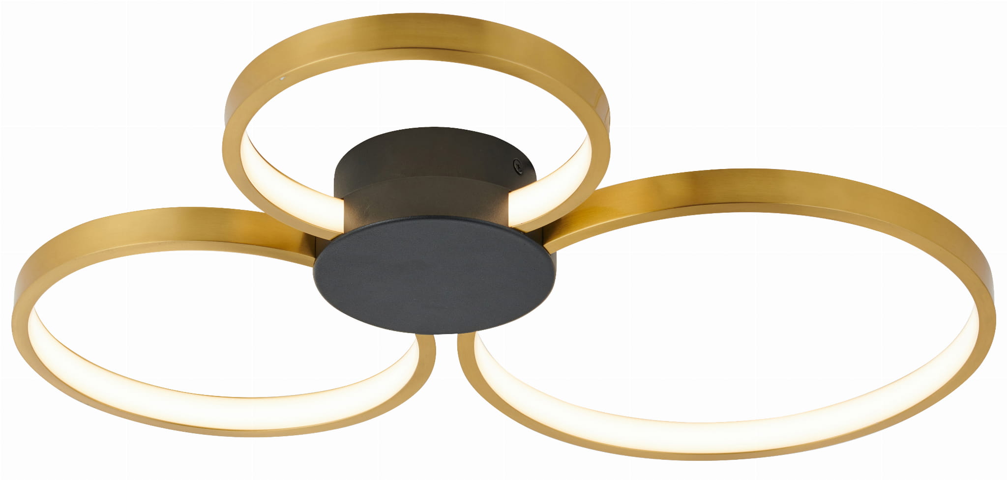 Condida - plafon LED czarny mat/złoty. 24W 1920Lm. Zmienna temperatura światła 3000/3500/4000K. Wysokość 6cm. Szerokość 58cm. Głębokość 51,5cm. Ringi 28, 22 i 18cm. Klosz silicon. 5 lat gwarancji. Serwis pogwarancyjny