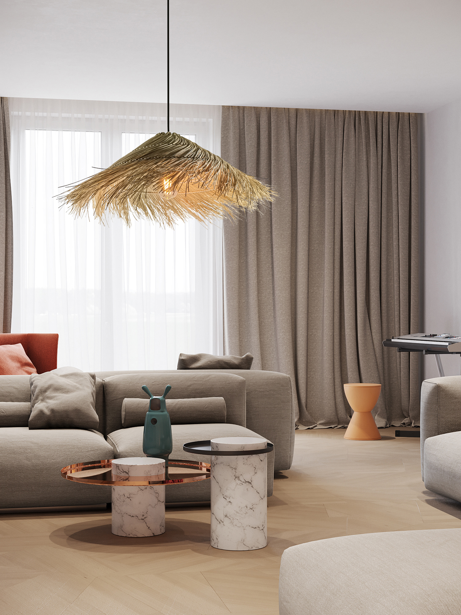 Cosma - lampa wisząca brąz. . Abażur ratan