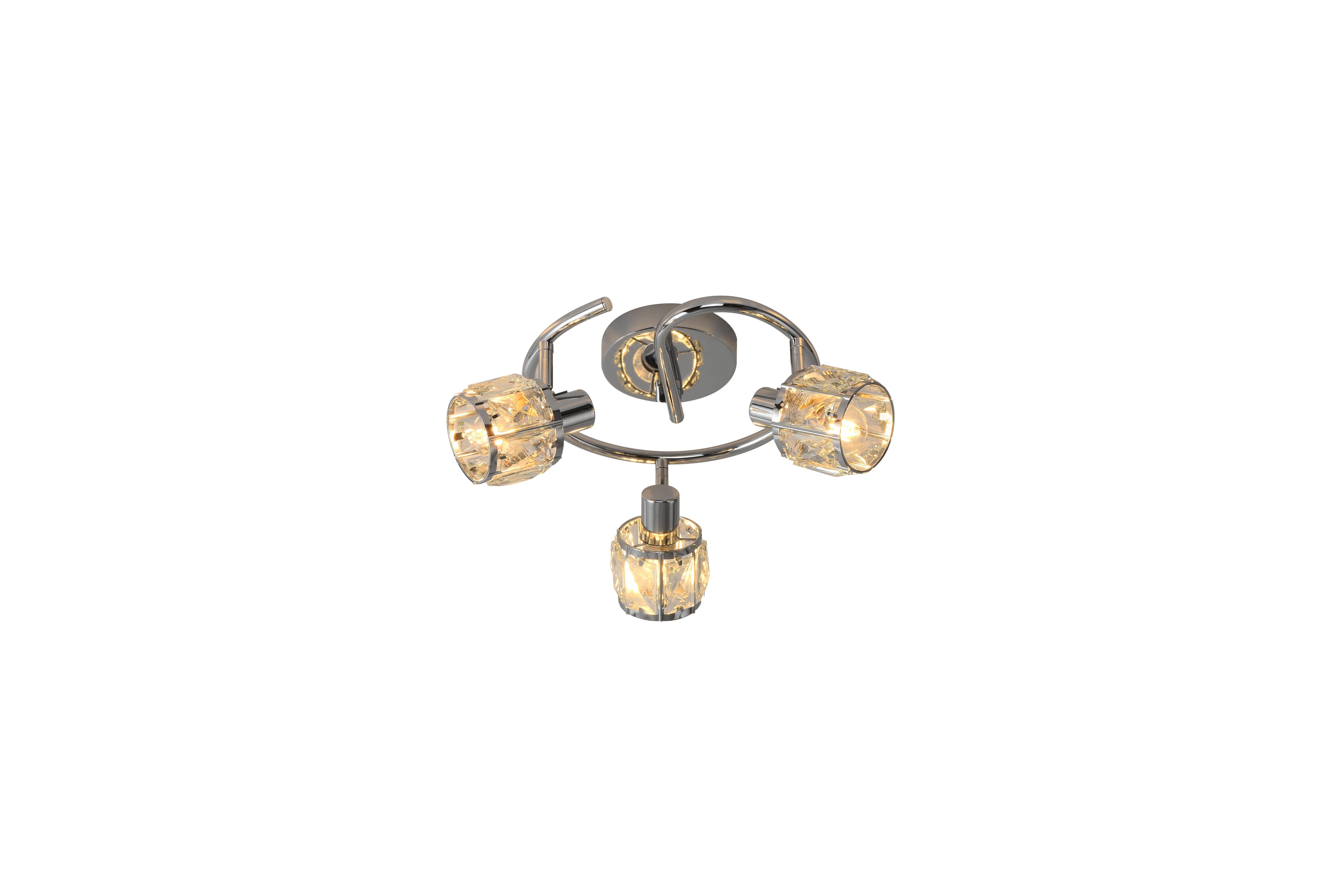 Crownie - spirala 3 płomienna chrom. 3xE14 40W. Wysokość 14cm. Szerokość 25cm. Głębokość25cm. Klosze kryształ
