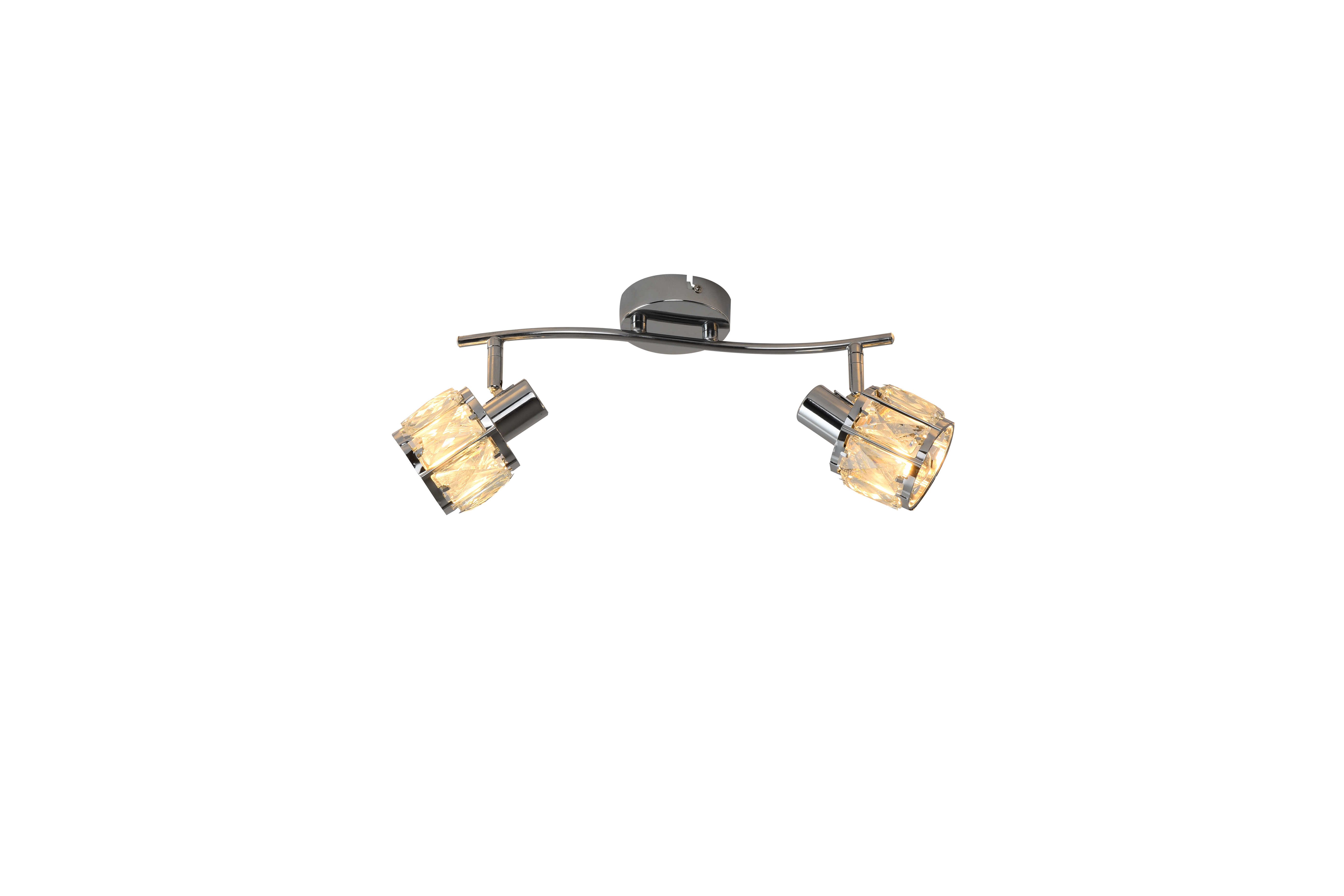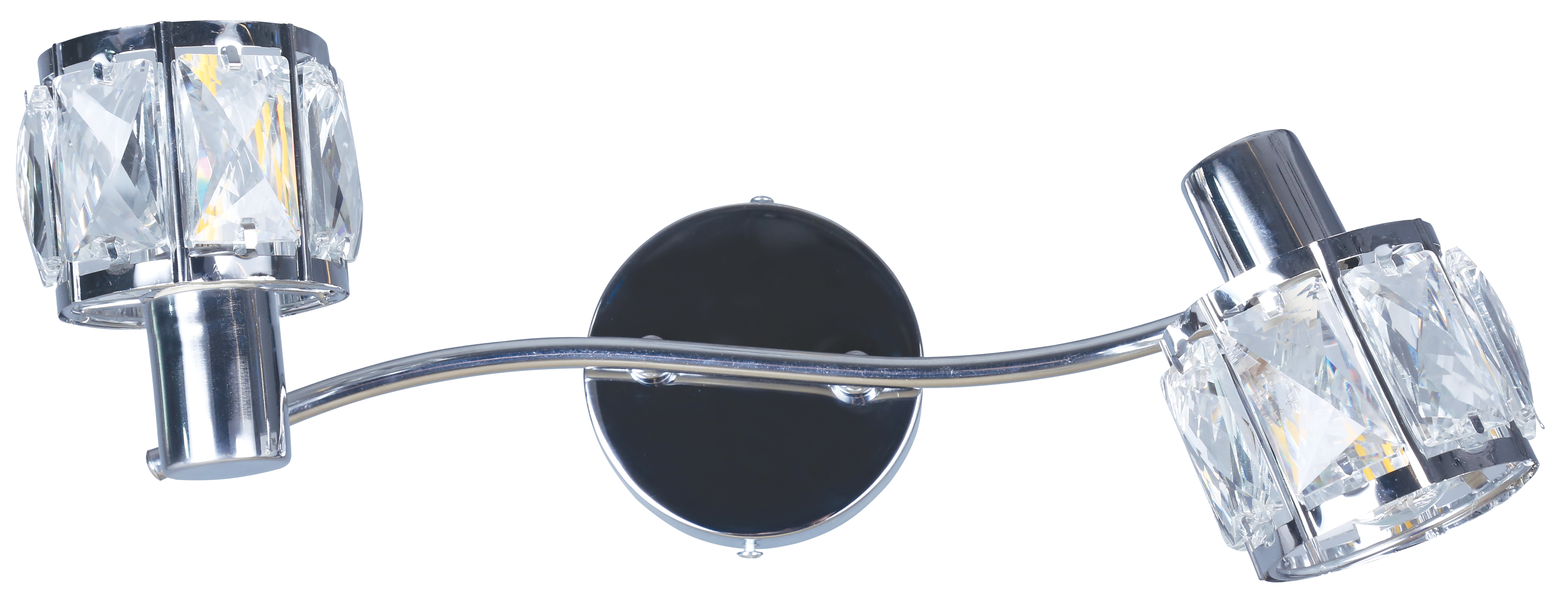 Crownie - listwa 2 płomienna chrom. 2xE14 40W. Wysokość 14cm. Szerokość 28cm. Głębokość 8cm. Klosze kryształ