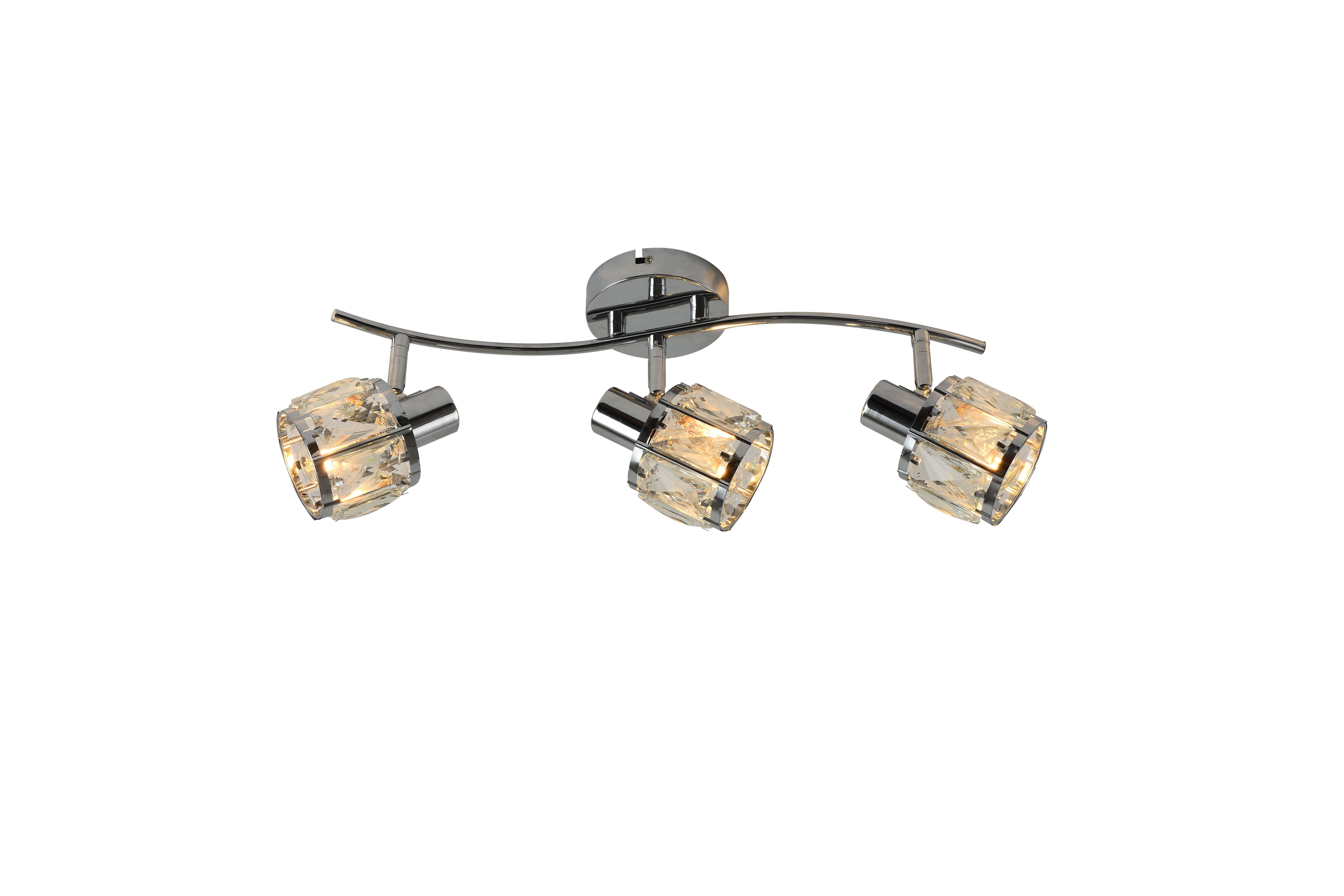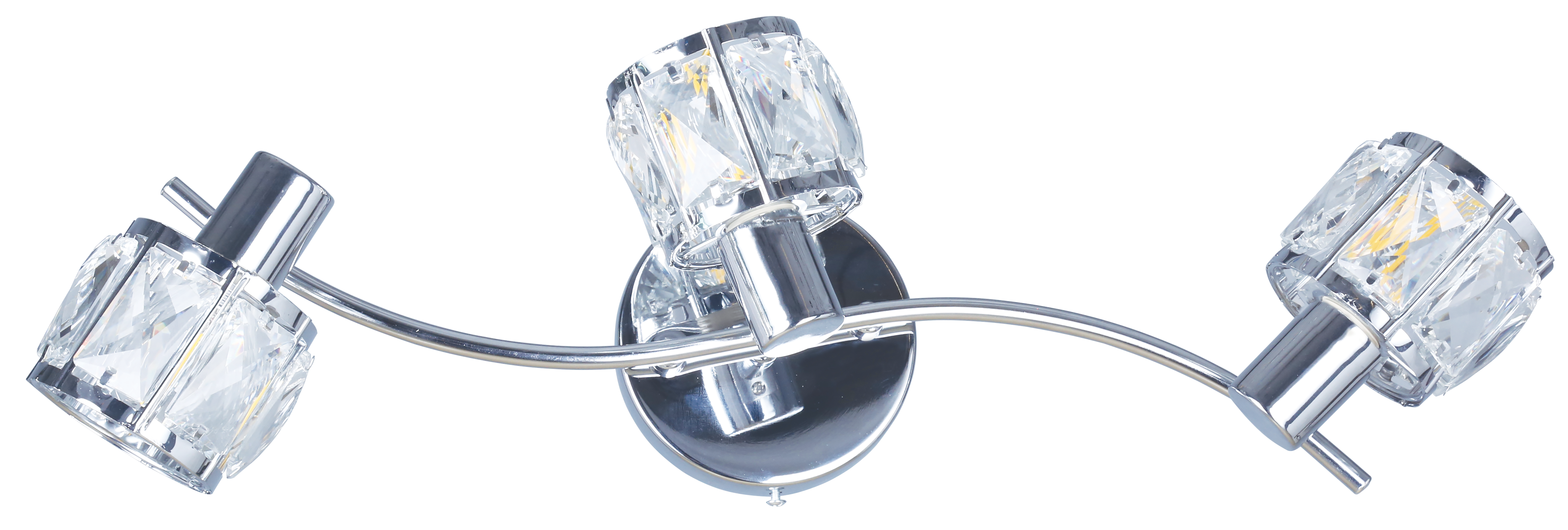 Crownie - listwa 3 płomienna chrom. 3xE14 40W. Wysokość 14cm. Szerokość 45cm. Głębokość 8cm. Klosze kryształ