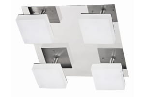 Denise - plafon 4 płomienny chrom/alu. 4x5W LED SMD 4x400Lm 3000K (wymienne). Wysokość 8cm. Szerokość 20cm. Głębokość 20cm. Klosz akryl mat