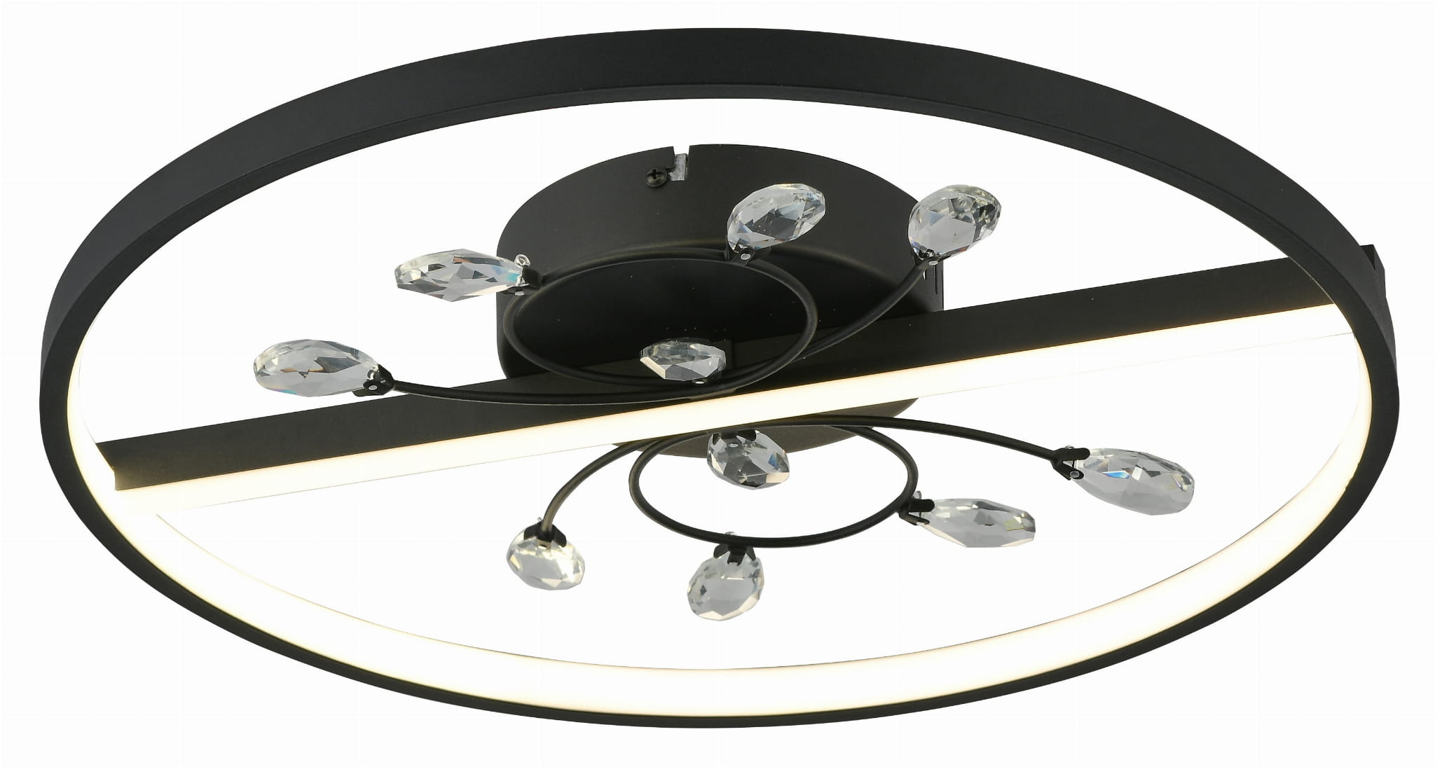 Dacota - plafon LED czarny mat. 1x24W 1920Lm 4000K. Wysokość 7cm. Szerokość 45cm. Głębokość 45cm. Klosz akryl deco kryształ.
