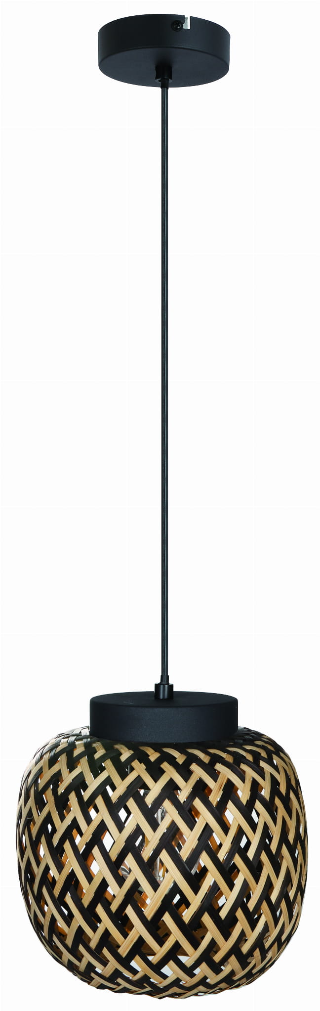 Elaine - lampa wisząca czarny mat. 1xE27 40W. Wysokość 17cm. Wysokość całkowita 120cm. Szerokość 20cm. Głębokość 20cm. Abażur bambus jasny brąz/czarny