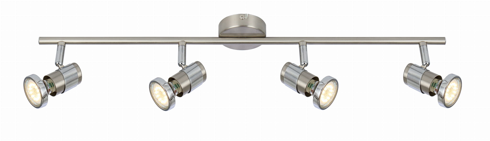 Emina - listwa 4 płomienna satyna/chrom. 4xGU10 max 50W bez żarówek. Wysokość 12cm. Szerokość 67cm. Głębokość 12cm. Klosze metal