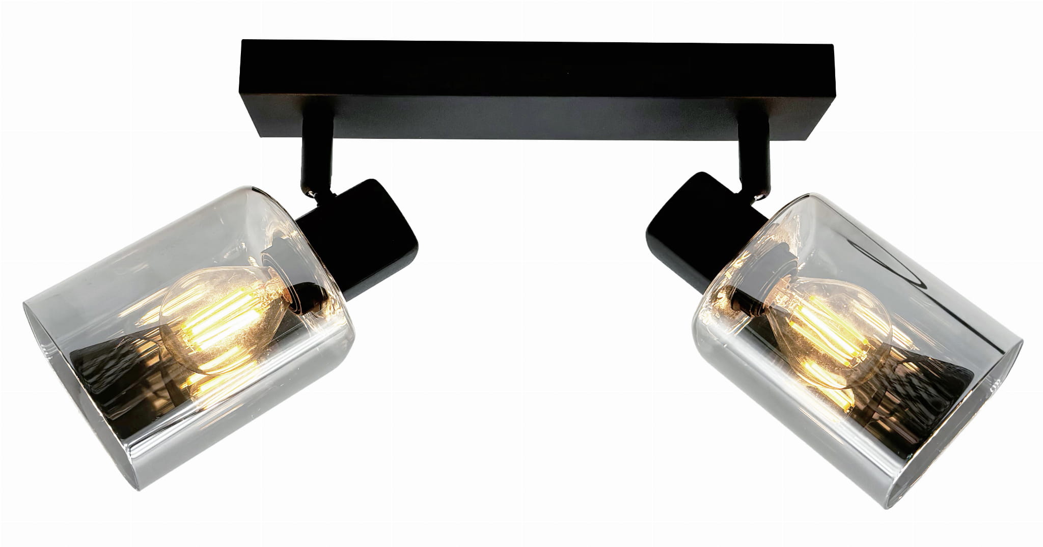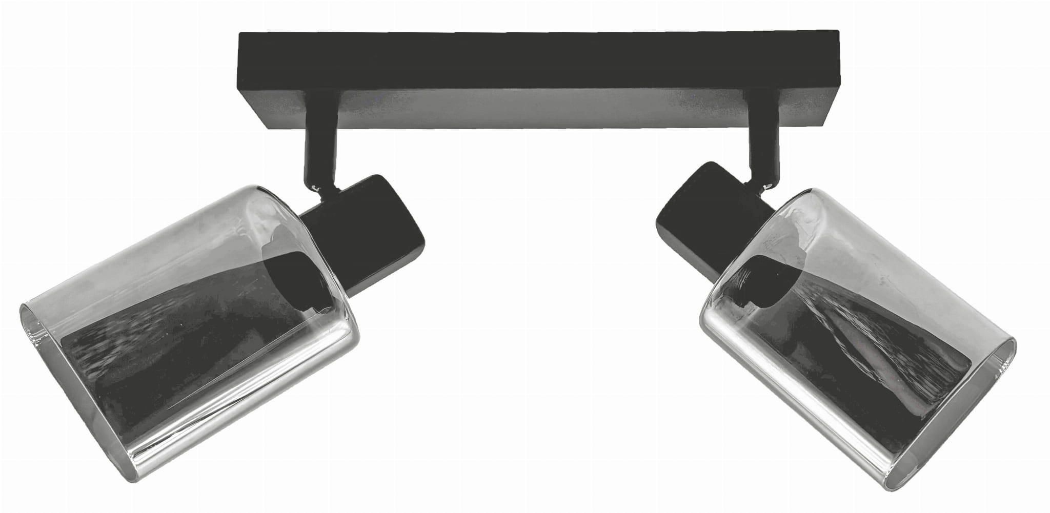 Harlow - listwa 2 płomienna czarna. 2xE14 40W. Wysokość 14cm. Szerokość 25cm. Głębokość 9cm. Klosze smokey galwanizowane