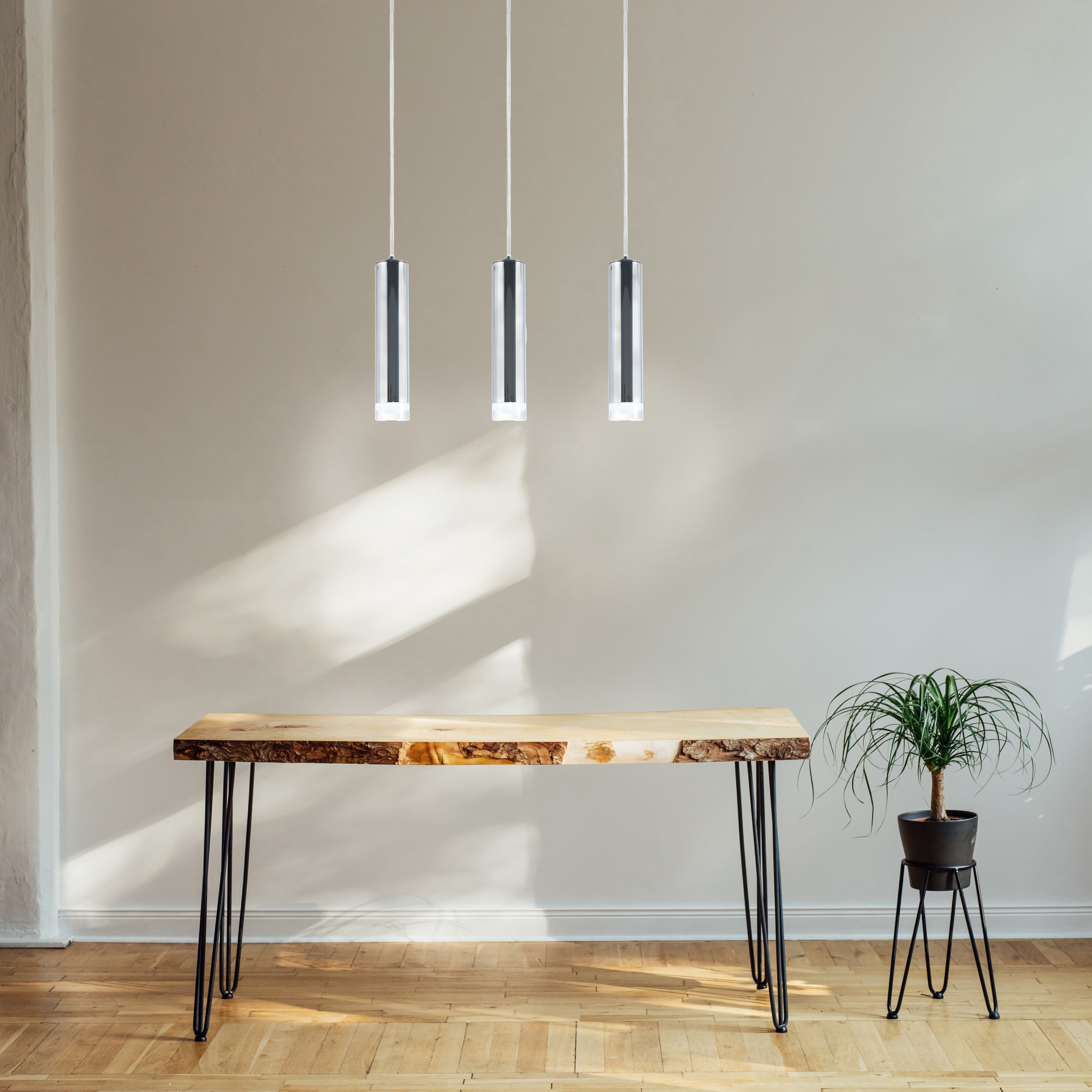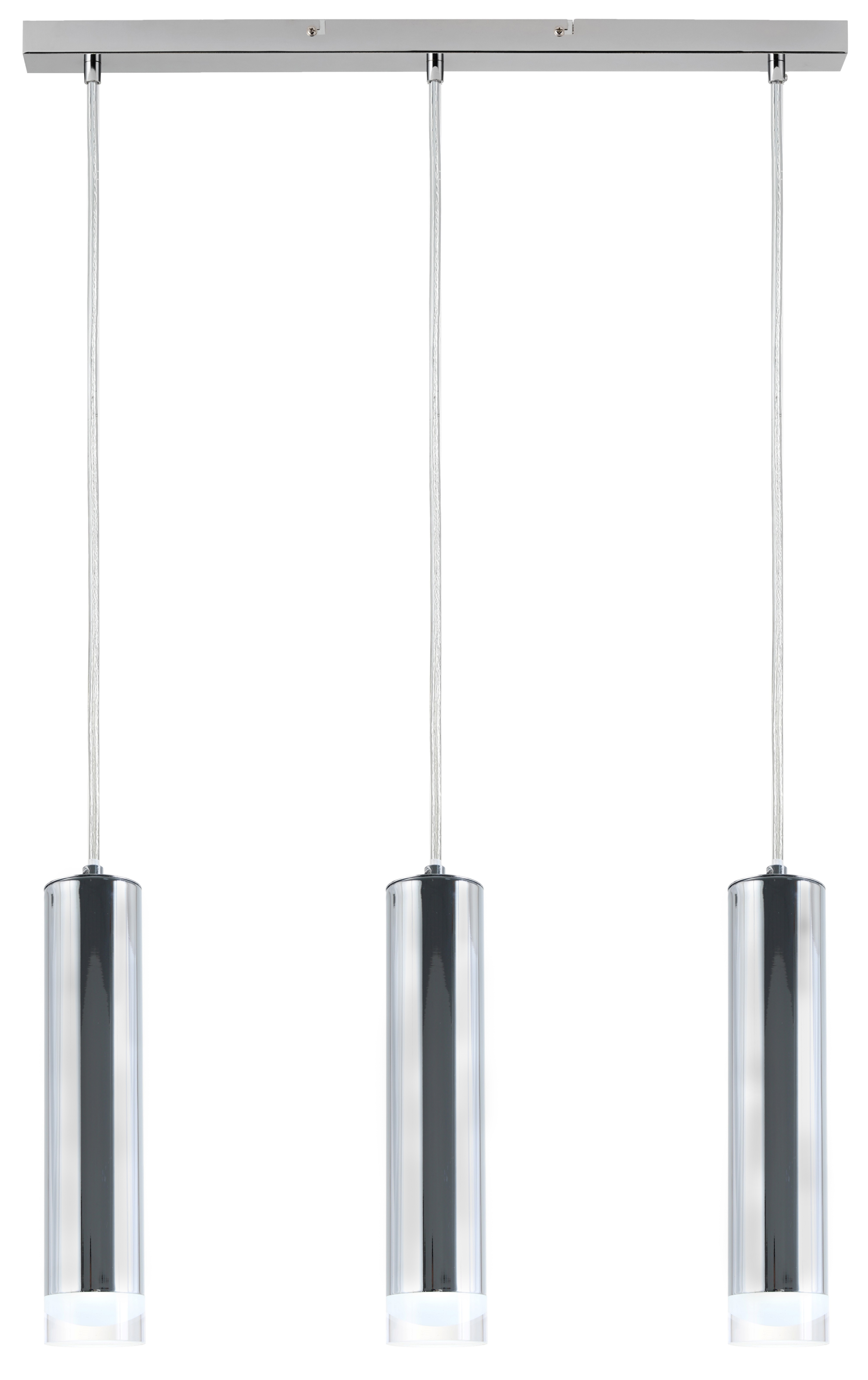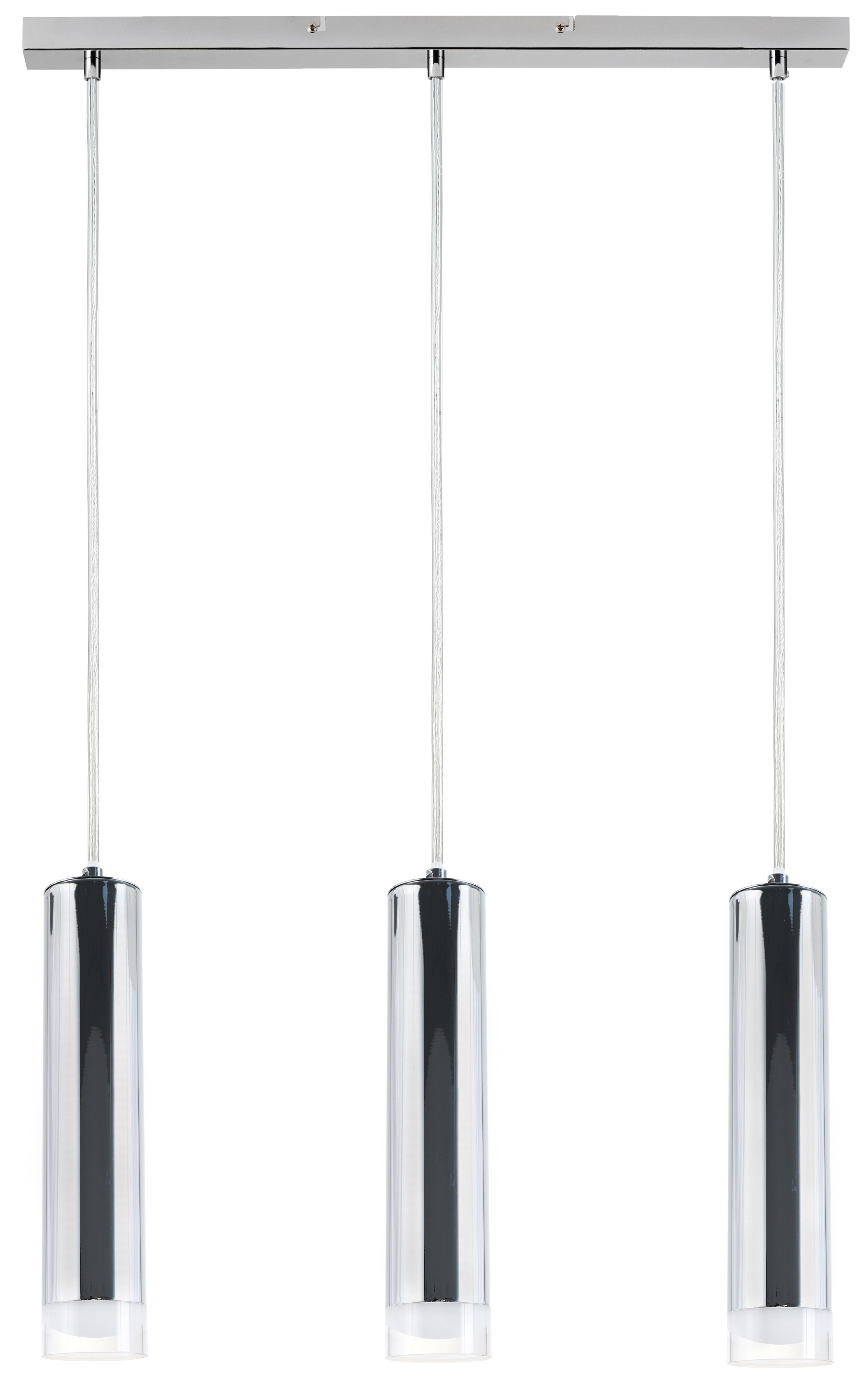 Ina - lampa wisząca chrom. 3xE27 40W. Wysokość 28,5cm. Wysokość całkowita 120cm. Szerokość 45cm. Głębokość 6cm. Klosze akryl przezroczysty