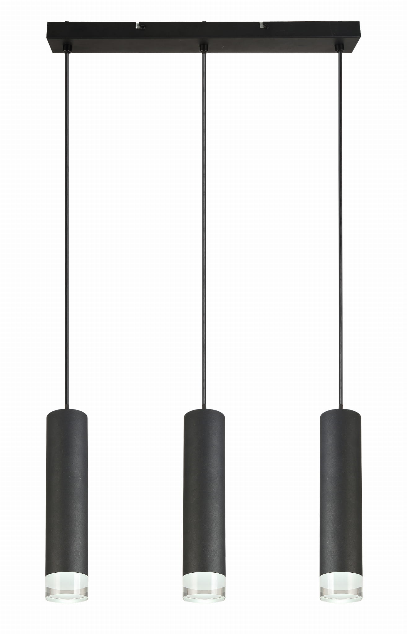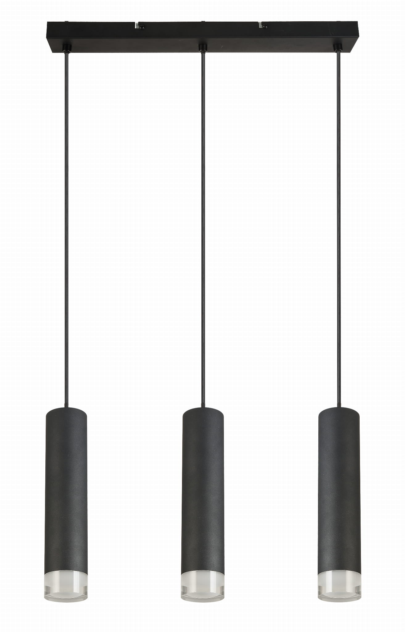 Ina - lampa wisząca czarny mat. 3xE27 40W. Wysokość 28,5cm. Wysokość całkowita 120cm. Szerokość 45cm. Głębokość 6cm. Klosze akryl przezroczysty