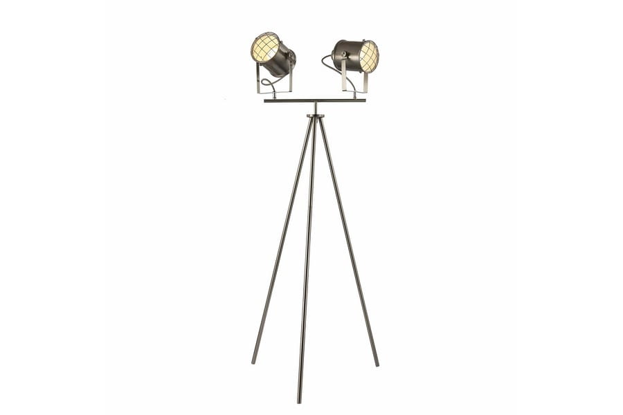 Movie - lampa podłogo 2 płomienna nikiel mat. 2xE27 40W. Wysokość 120cm. Szerokość 45cm. Głębokość 45cm. Klosze metal