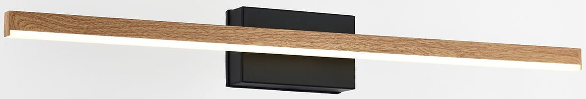 Linea - kinkiet łazienkowy LED czarny/imitacja drewna. 1x7W 560Lm 4000K. Wysokość 7cm. Szerokość 60cm. Głębokość 8cm. IP44. Klosz akryl. Postawa czarna, ramię imitacja drewna