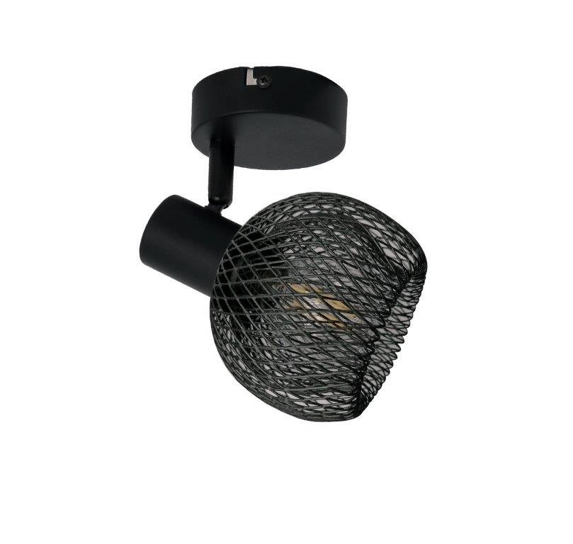 Loretto - kinkiet 1 płomienny czarny. 1xE14 40W. Wysokość 14cm. Szerokość 14cm. Głębokość 10cm. Klosz podwójny z metalowej siatki
