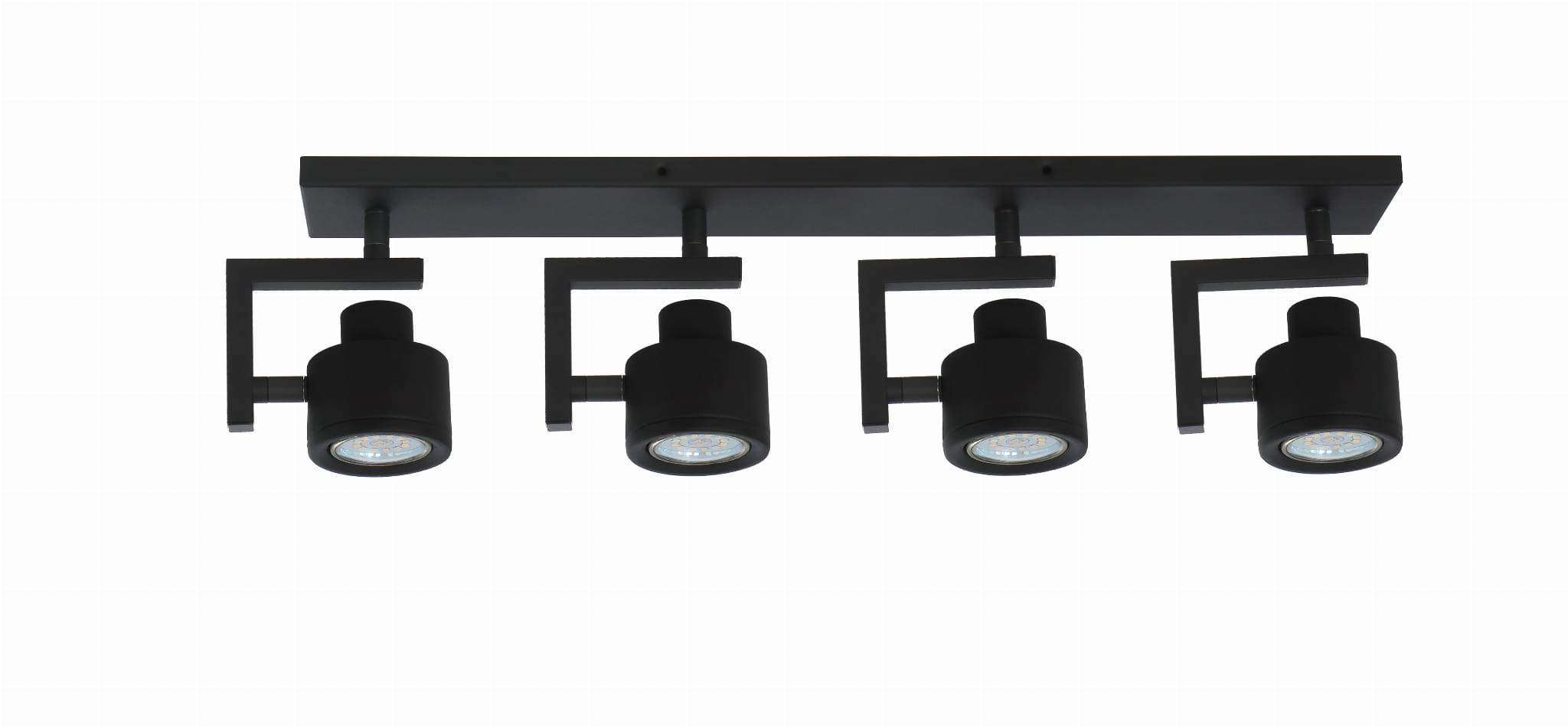 Alenis - listwa 4 płomienna czarna. 4xGU10 max 50W bez żarówek. Wysokość 15cm. Szerokość 57cm. Głębokość 8cm. Klosze metal