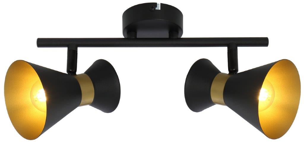 Breda - listwa 2 płomienna czarno/złota. 2xE14 40W. Wysokość 16cm. Szerokość 32cm. Głębokość 10cm. Klosze metal