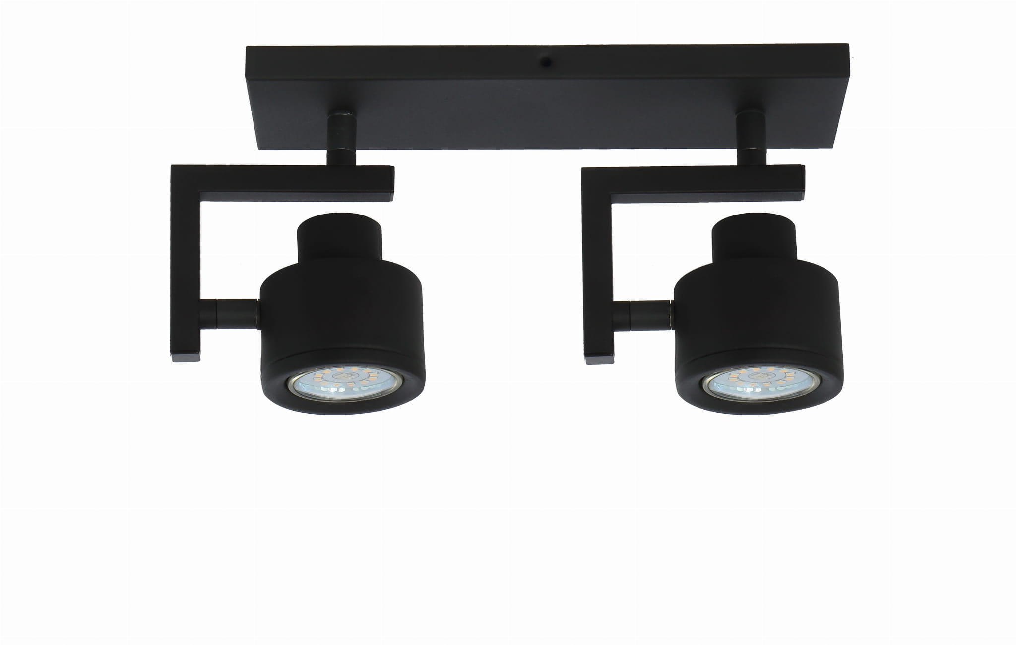 Alenis - listwa 2 płomienna czarna. 2xGU10 max 50W bez żarówek. Wysokość 15cm. Szerokość 26cm. Głębokość 8cm. Klosze metal.