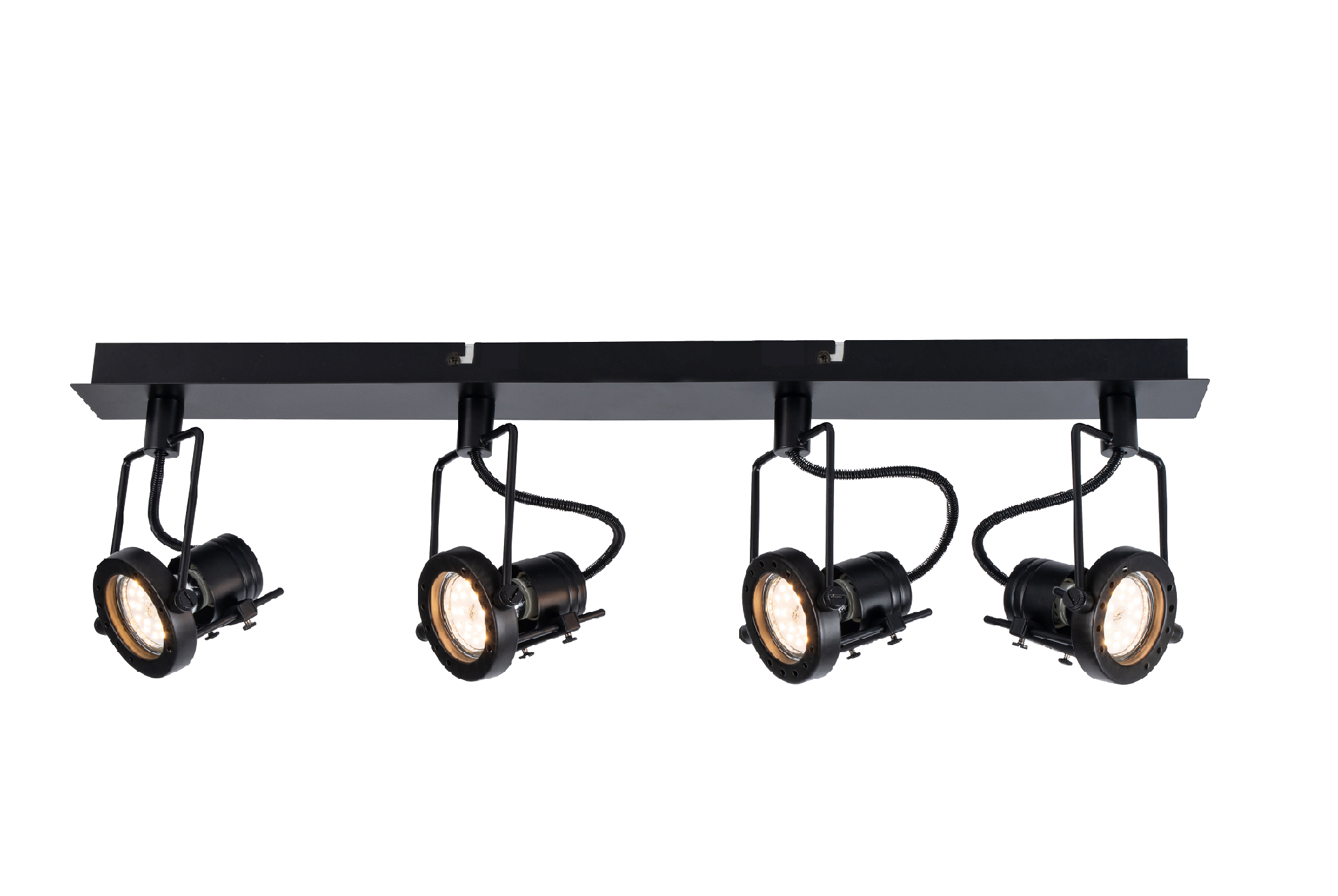Fiji - listwa 4 płomienna czarna. 4xGU10 bez żarówek. Wysokość 16cm. Szerokość 60cm. Głębokość 6cm. Klosze metal