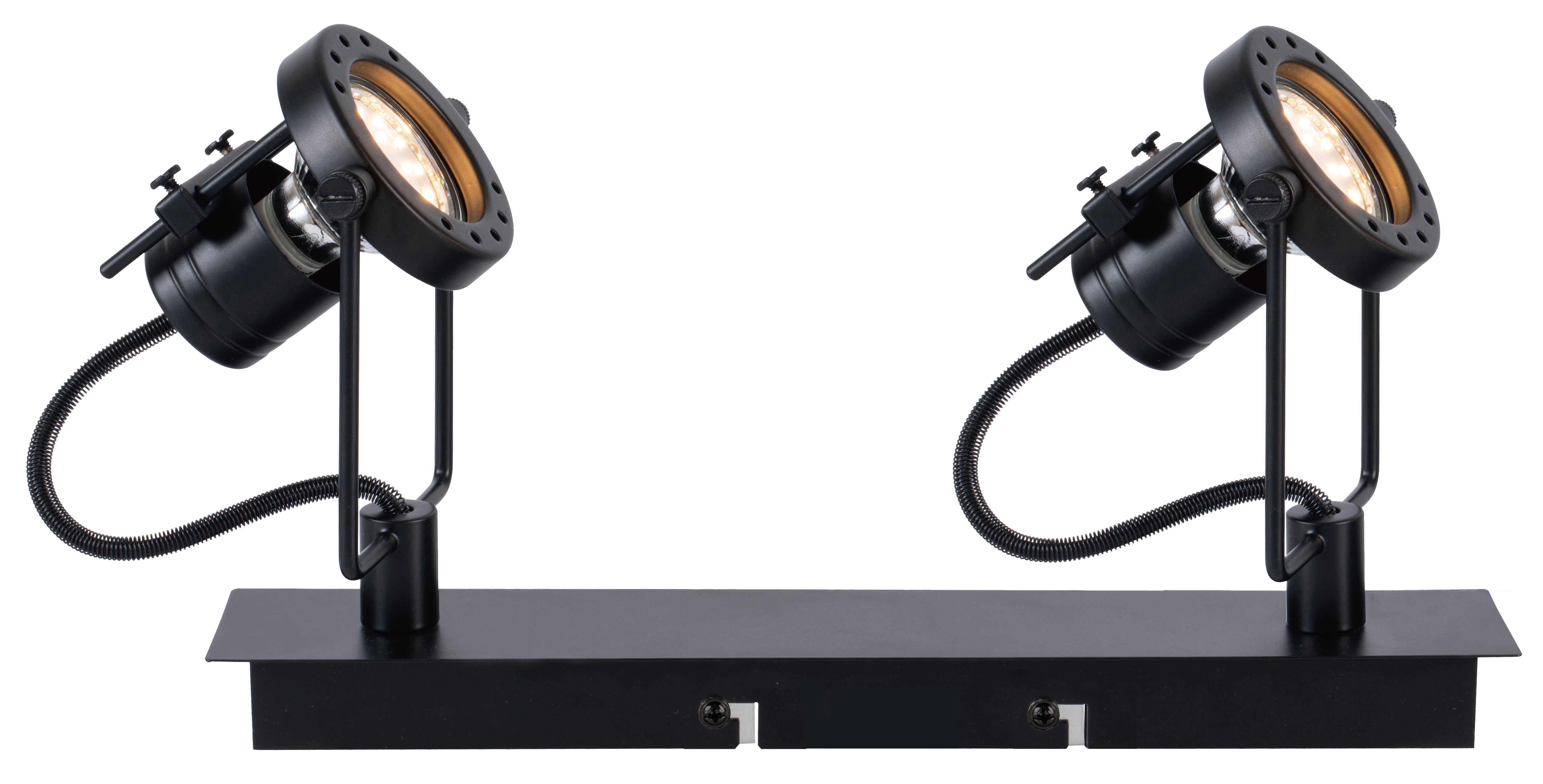 Fiji - listwa 2 płomienna czarna. 2xGU10 bez żarówek. Wysokość 16cm. Szerokość 32cm. Głębokość 6cm. Klosze metal.