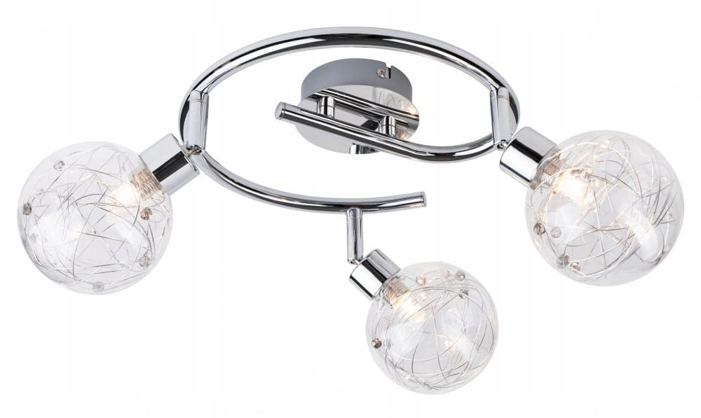 Sonora - spirala 3 płomienna chrom. 3xG9 33W. Wysokość 18cm. Szerokość 45cm. Głębokość 45cm. Klosze - nowość szklane z aluminiowym drutem i szklanymi koralikami
