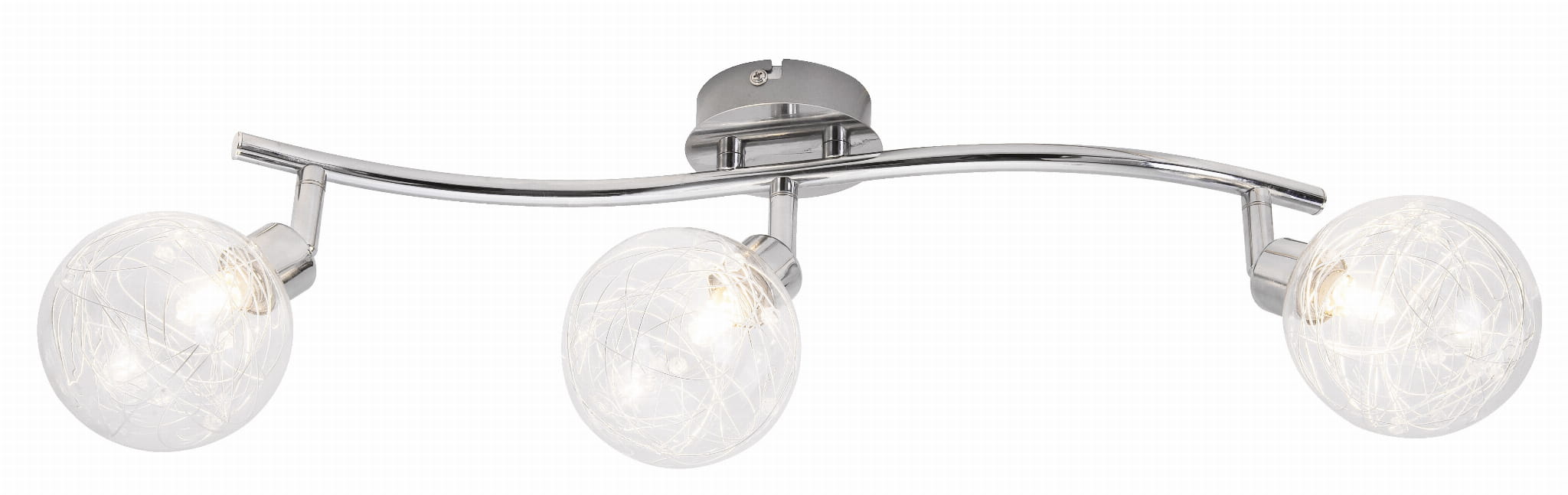 Sonora - listwa 3 płomienna chrom. 3xG9 33W. Wysokość 18cm. Szerokość 47cm. Głębokość 17cm. Klosze szklane z aluminiowym drutem i szklanymi koralikami. Żarówki w zestawie
