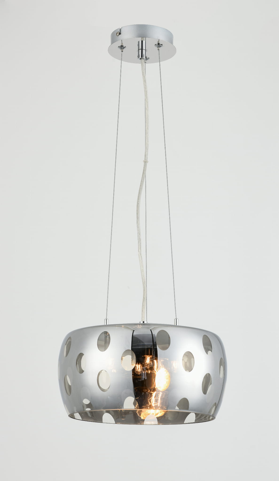 Kilia - lampa wisząca 4 płomienna chrom. 4xG9 33W. Wysokość całkowita 120cm. Wysokość 20cm. Szerokość 30cm. Głębokość 30cm. Klosz szklany galwanizowany.