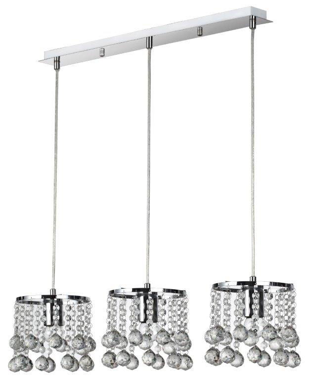London crystal - lampa wisząca 3 płomienna chrom. 3xE14 40W. Wysokoś 100 cm. Szerokość 75cm. Głębokość 19cm. Zawiesia kryształ