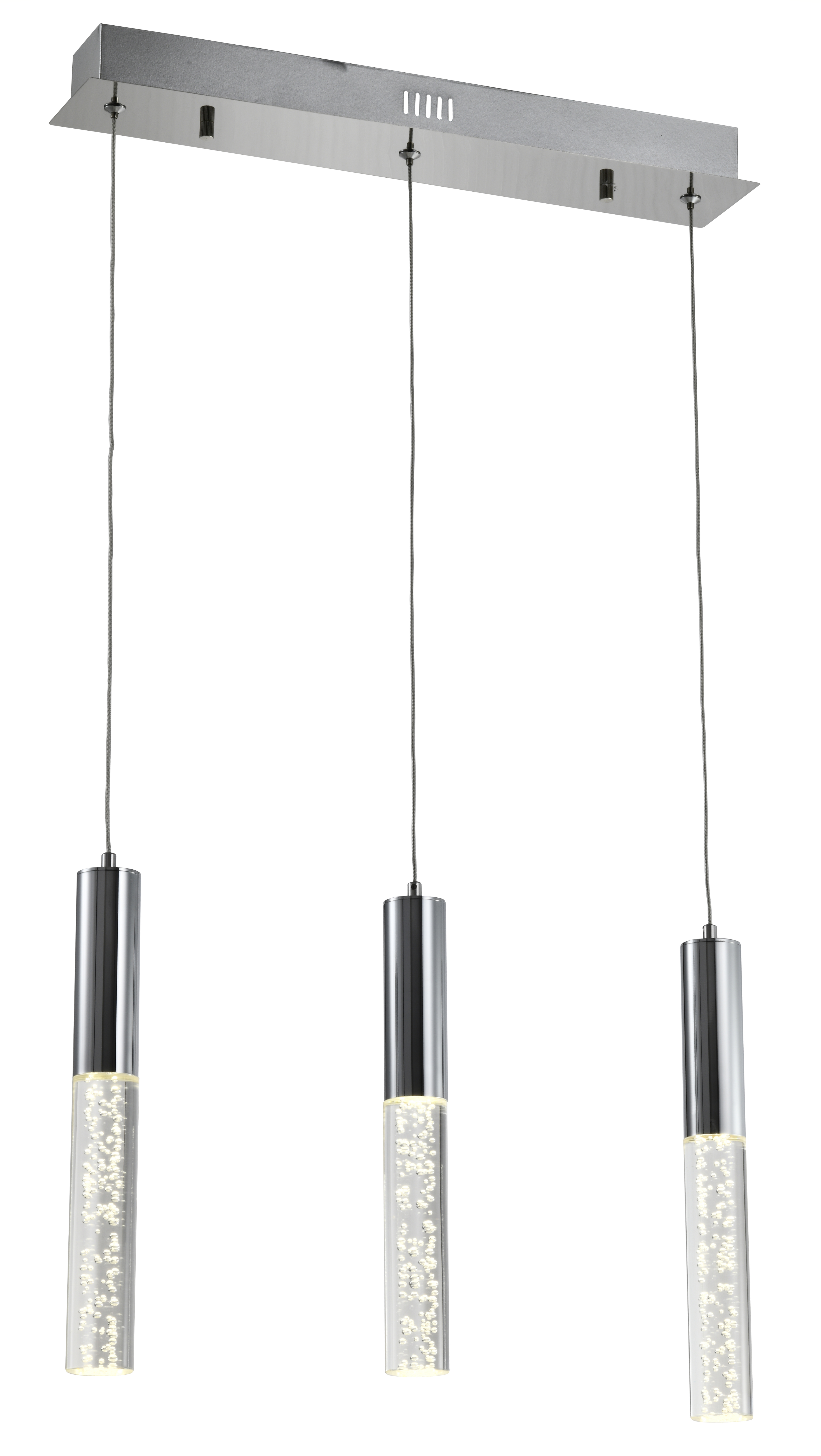 Neda - lampa wisząca 3 płomienna LED chrom. 3x5W 3x350Lm 4000K. Wysokość całkowita 100cm. Szerokość 45cm. Głębokość 3,8cm. Klosze akryl przezroczysty