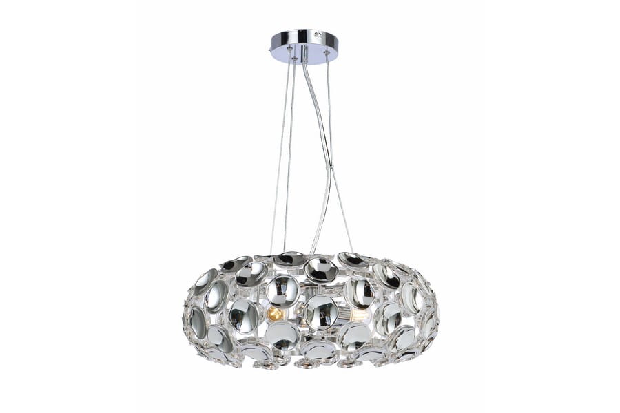 Ontario - lampa wisząca 3 płomienna chrom. 3xE14 40W. Wysokość 150cm. Szerokość 35cm. Głębokość 35cm. Abażur z tworzywa sztucznego chrom