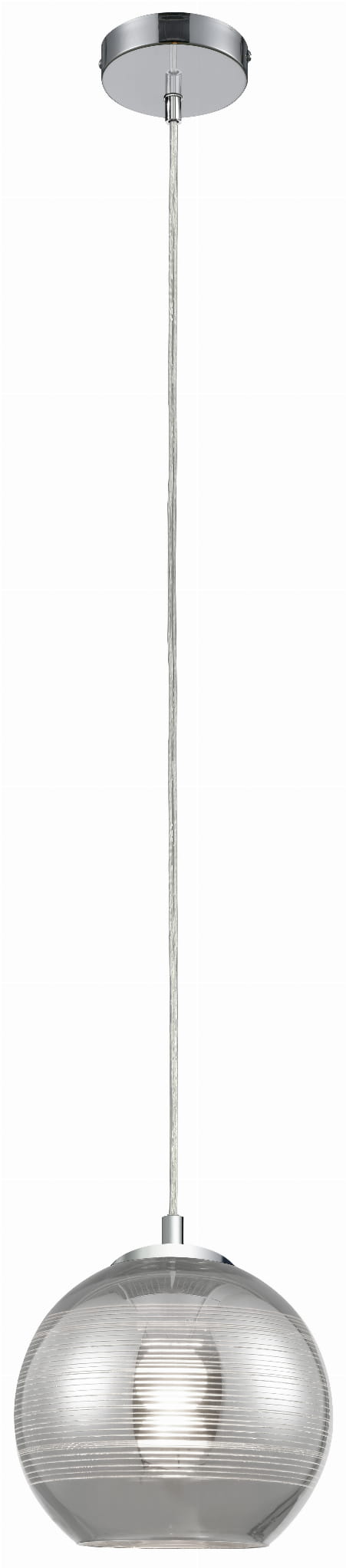 Jaron - lampa wisząca 1 płomienna chrom. 1xE27 40W. Wysokość 120cm. Szerokość 20cm. Głębokość 20cm. Klosz szklany galwanizowany deco chrom paski