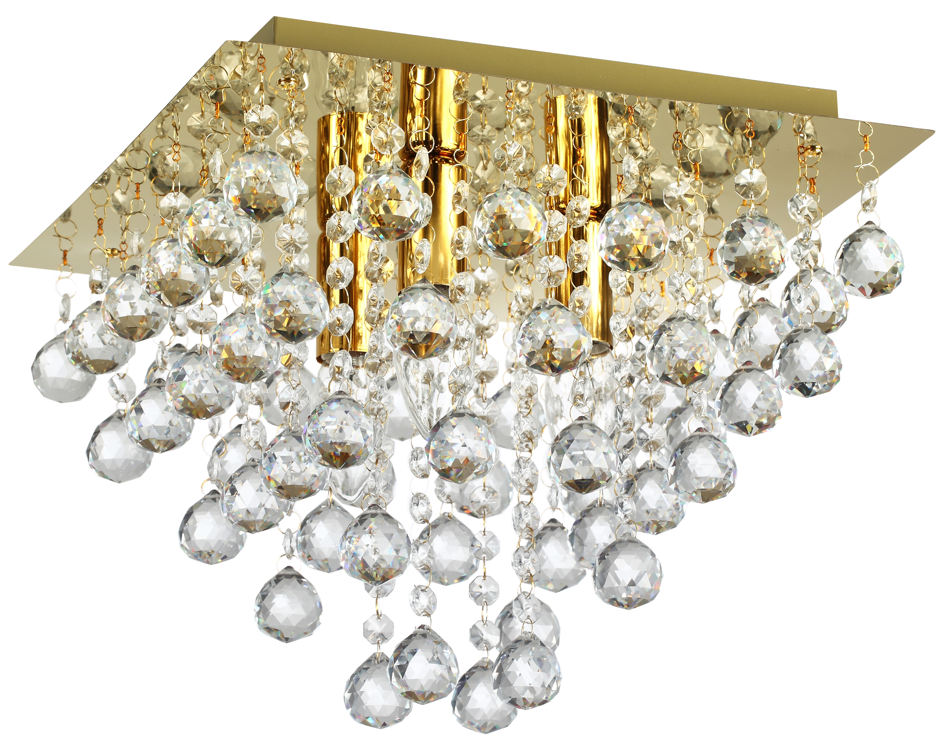 Lancaster crystal - plafon 3 płomienny złoty. 3xE14 40W. Wymiary 32x32cm. Wysokość 35cm. Zawiesia kryształ