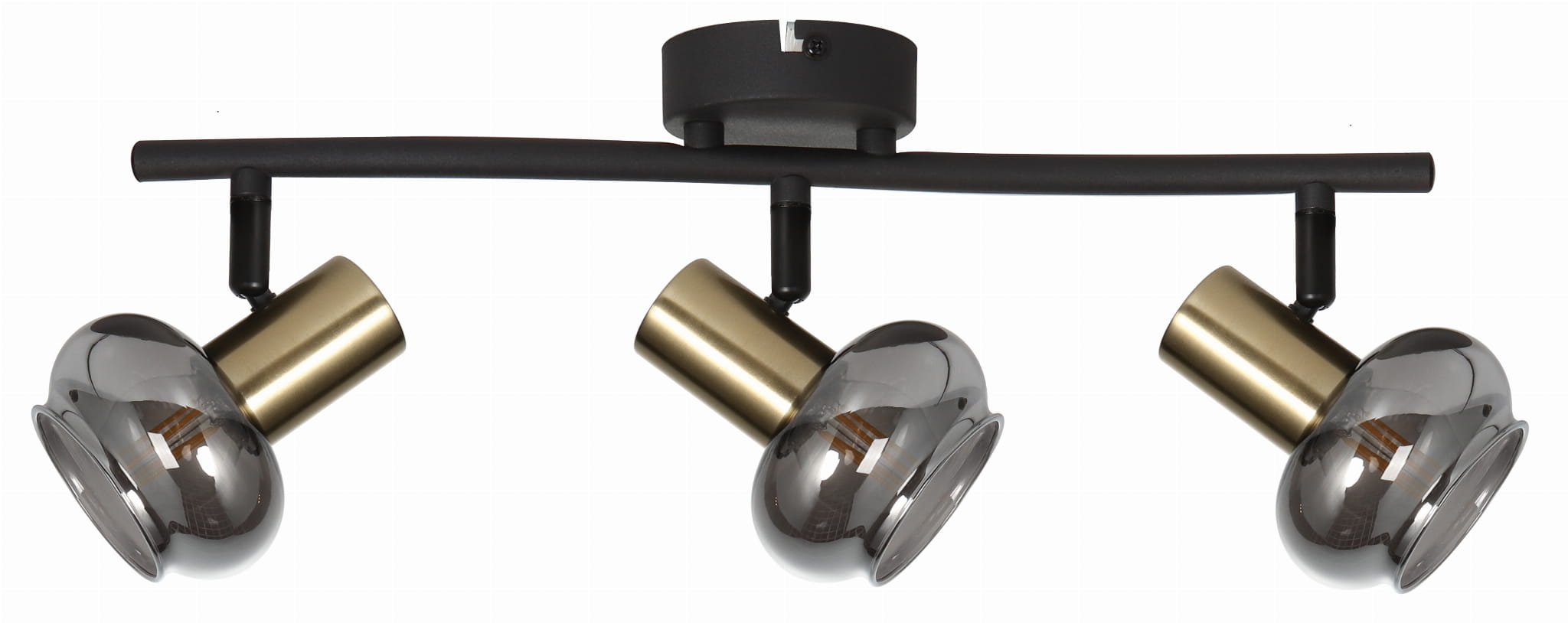 Lauree - listwa 3 płomienna czarny mat/złoty. 3xE14 40W. Wysokość 14cm. Szerokość 45cm. Głębokość 9cm. Klosze matowo-przezroczyste z czarny mat/złotymi obręczami.
