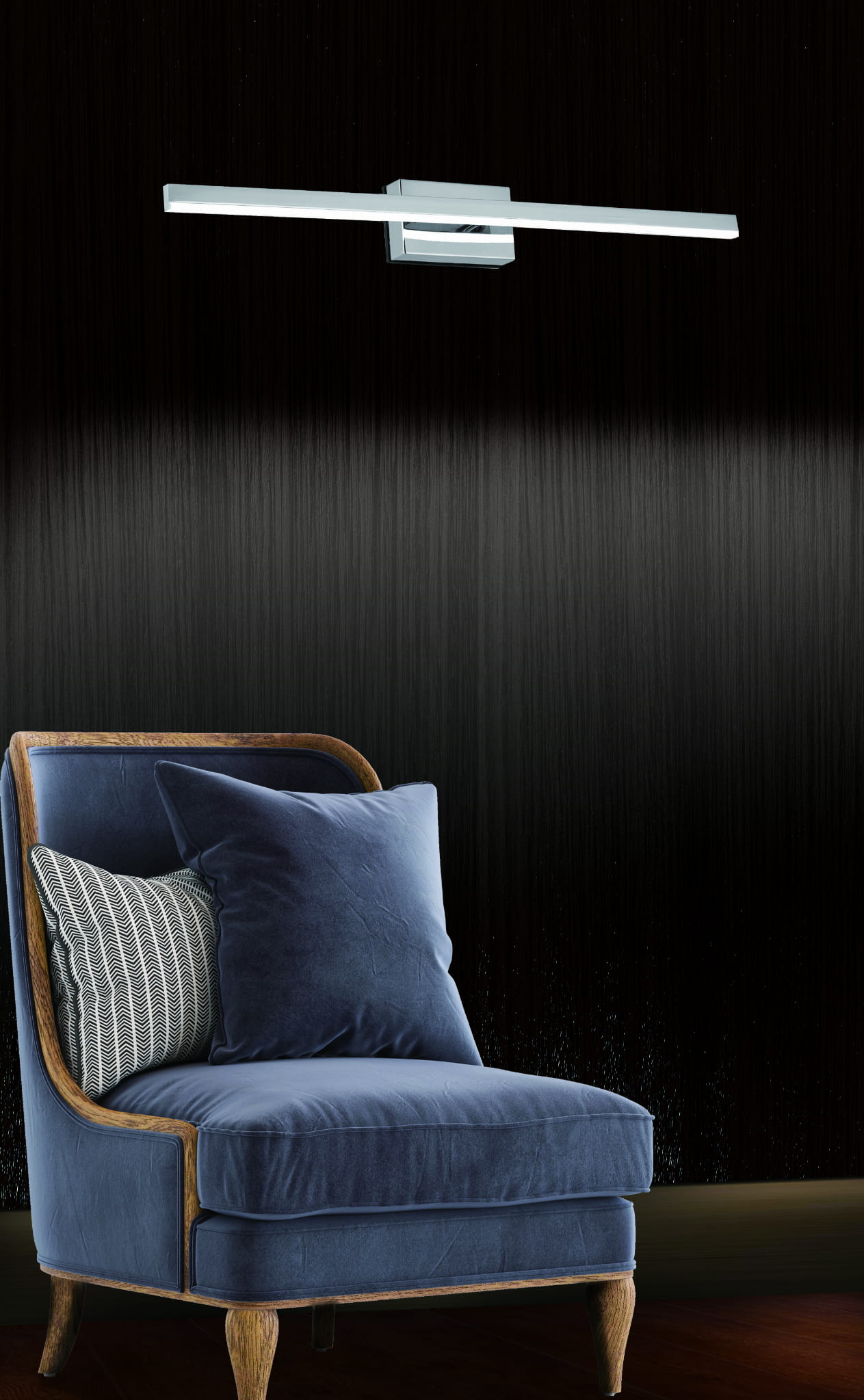 Linea - kinkiet łazienkowy LED chrom. 1x8W 640Lm 4000K. Wysokość 7cm. Szerokość 60cm. Głębokość 8cm. IP44. Klosz akryl. 5 lat gwarancji.
