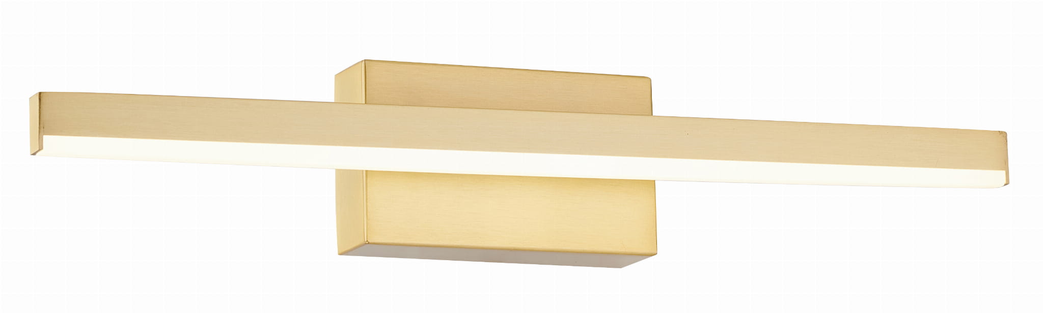 Linea - kinkiet łazienkowy LED jasny złoty. 1x5W 350Lm 4000K. Wysokość 7cm. Szerokość 40cm. Głębokość 8cm. IP44. Klosz akryl. 5 lat gwarancji.
