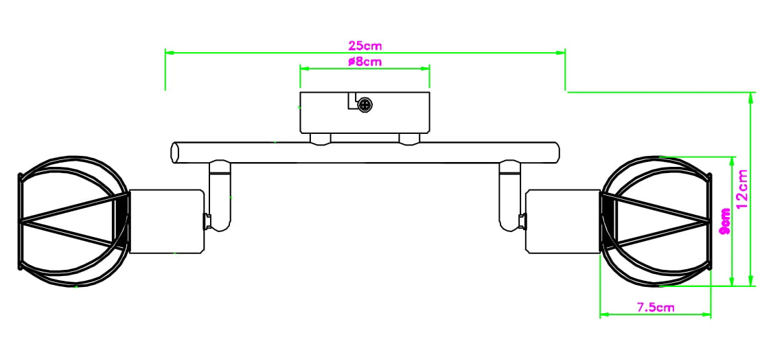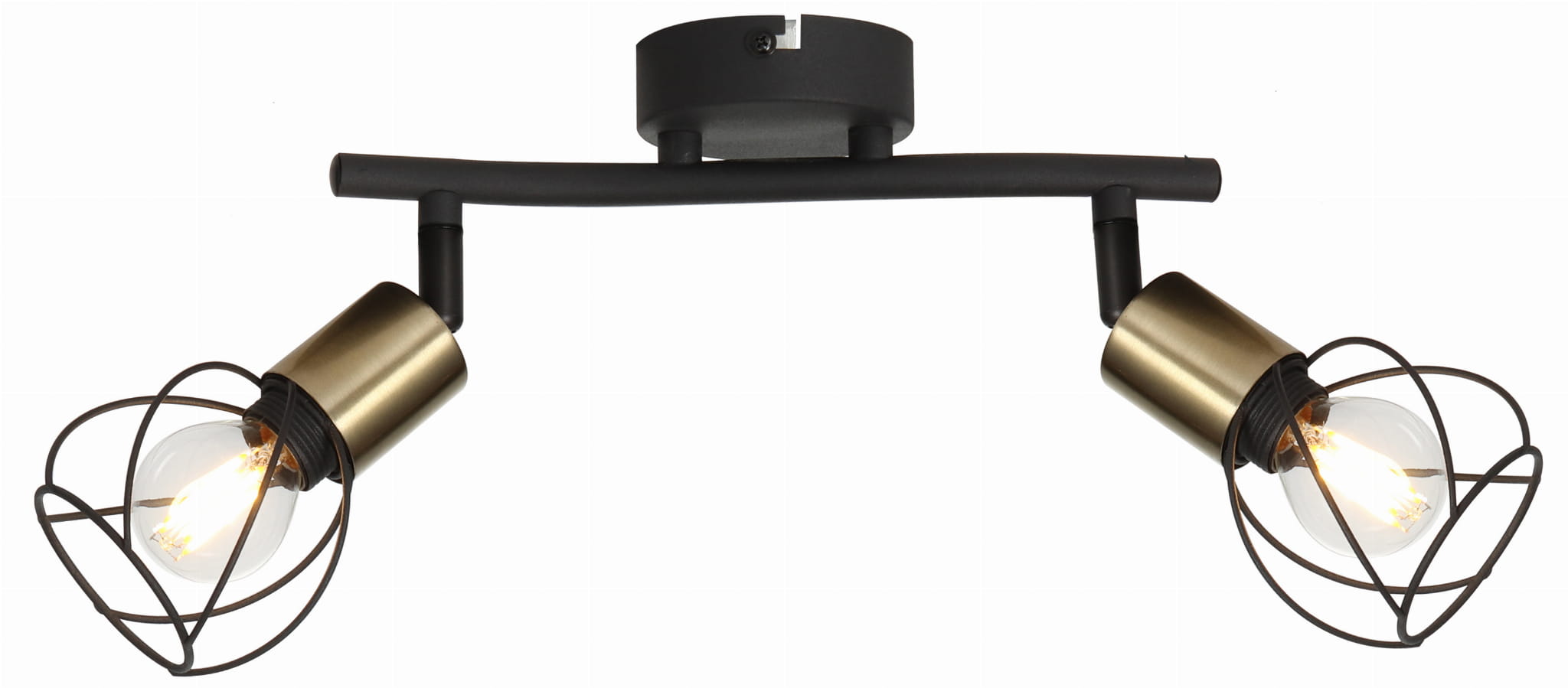 Mahavi - listwa 2 płomienna czarna/złota 2xE14 40W. Wysokość 15,5cm. Szerokość 25cm. Głębokość 9cm. Klosze metal