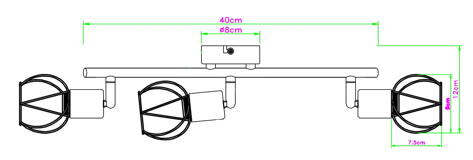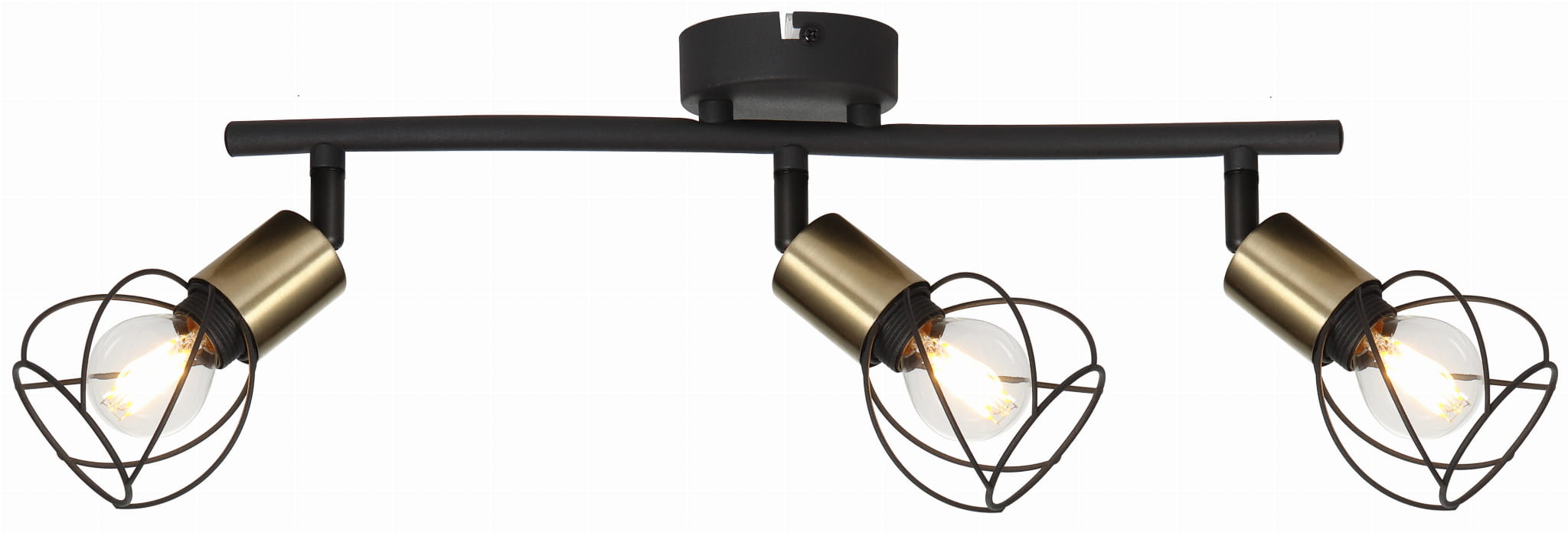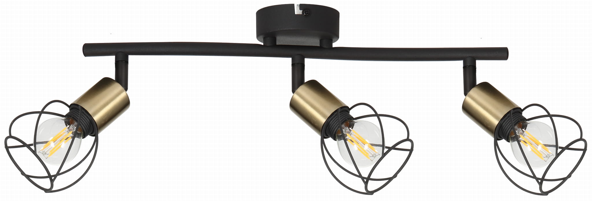 Mahavi - listwa 3 płomienna czarna/złota 3xE14 40W. Wysokość 15,5cm. Szerokość 40cm. Głębokość 9cm. Klosze metal