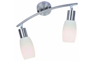Namp - listwa 2 płomienna nikiel mat. 2xE14 max 40W. Wysokość 20cm. Szerokość 36cm. Szkła białe opal mat.