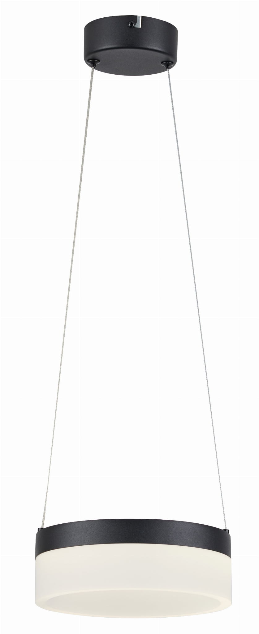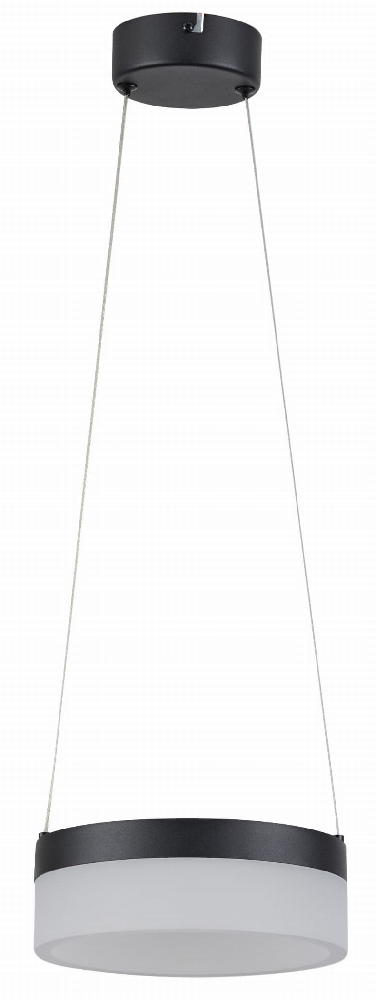 Nicki - lampa wisząca 1 płomienna LED czarna. 1x12W 960Lm 4000K. Wysokość 7cm. Wysokość całkowita 100cm. Szerokość 20cm. Głębokość 20cm. Klosz akryl mat
