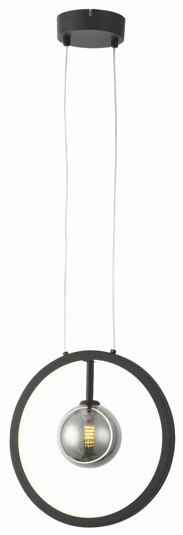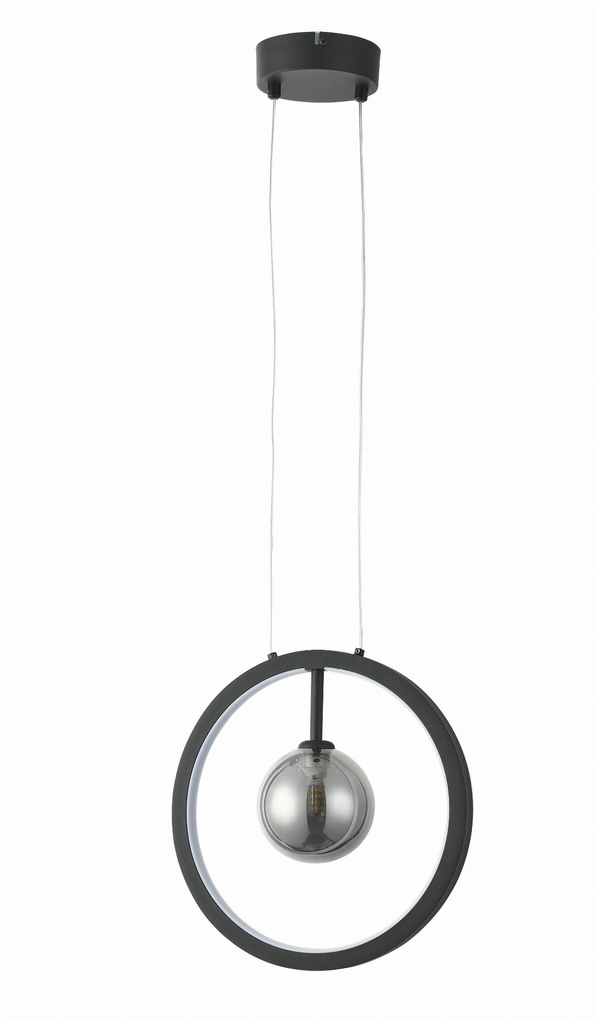 Omaha - lampa wisząca LED czarna. 1x12W LED 960Lm 4000K + 1xG9 (bez żarówki) Wysokość 28cm. Wysokość całkowita 120cm. Szerokość 28cm. Głębokość 10cm. Klosz LED akryl, klosz szklany smokey. LED i G9 włączane osobno