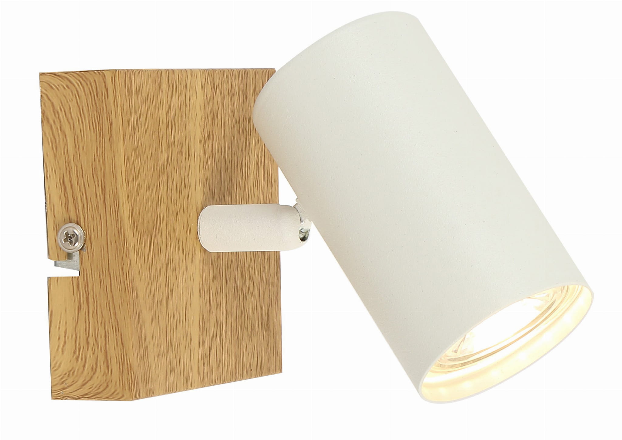 Quentin - kinkiet 1 płomienny imitacja drewna. 1xGU10 max. 15W. Wysokość 12cm. Szerokość 11cm. Głębokość 9cm. Klosz metal biały