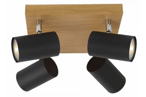 Quentin - plafon 4 płomienny imitacja drewna/czarny. 4xGU10 max. 15W. Wysokość 16cm. Szerokość 22cm. Głębokość 22cm. Klosze metal