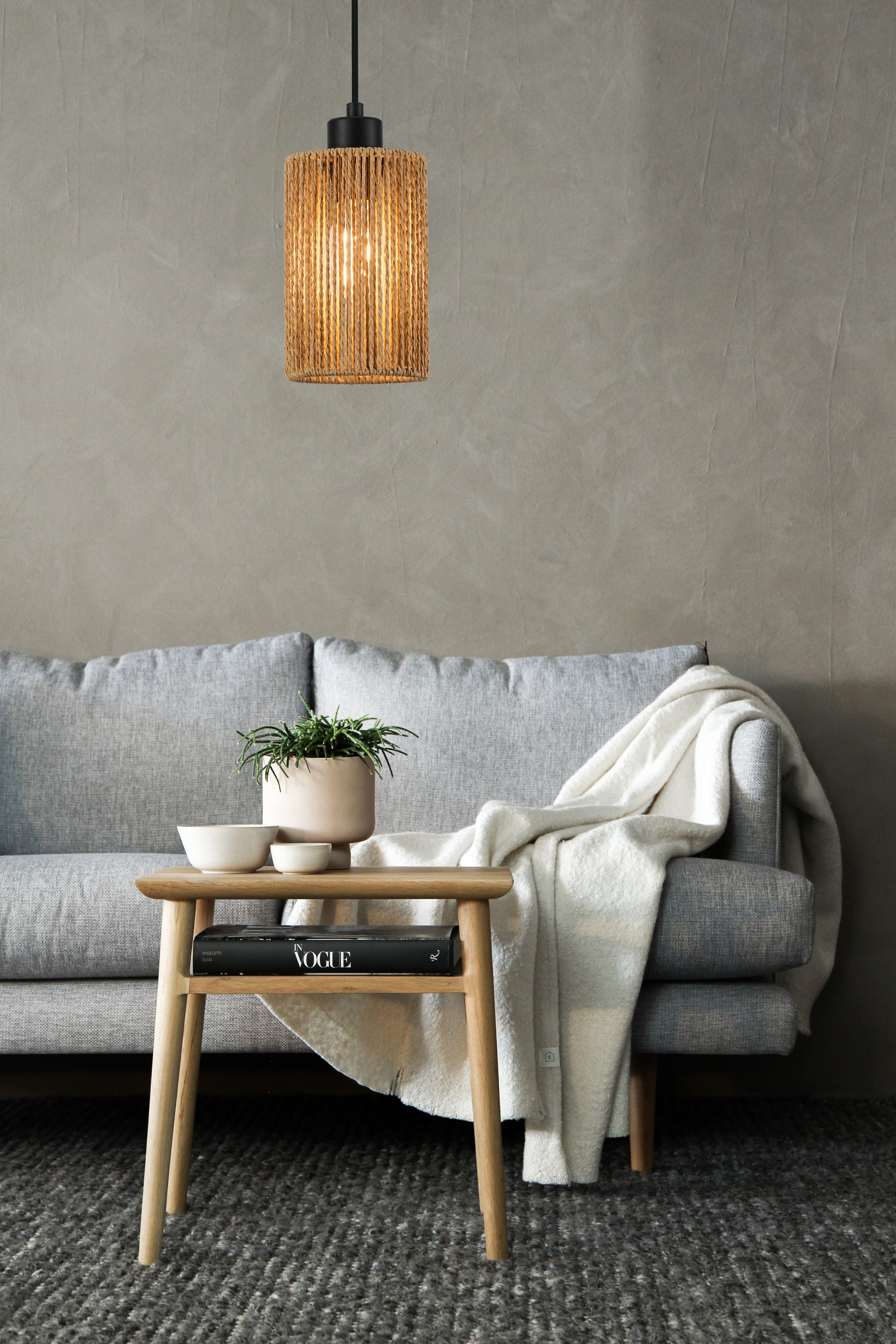 Tensa lampa wisząca brąz. 1xE27 40W. Wysokość 18cm. Wysokość całkowita 120cm. Szerokość 11cm. Głębokość 11cm. Abażur ze sznurka