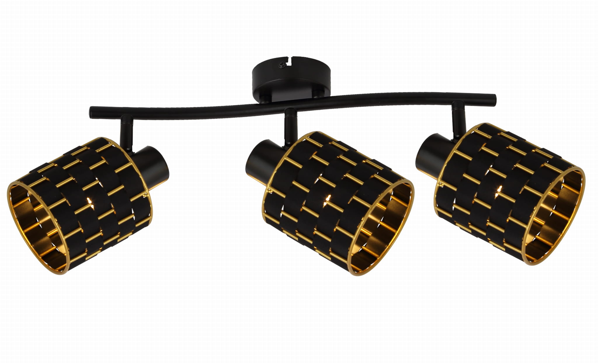 Thiago - listwa 3 płomienna czarna. 3xE14 40W. Wysokość 20cm. Szerokość 60cm. Głębokość 10cm. Abażury z tworzywa sztucznego czarny
