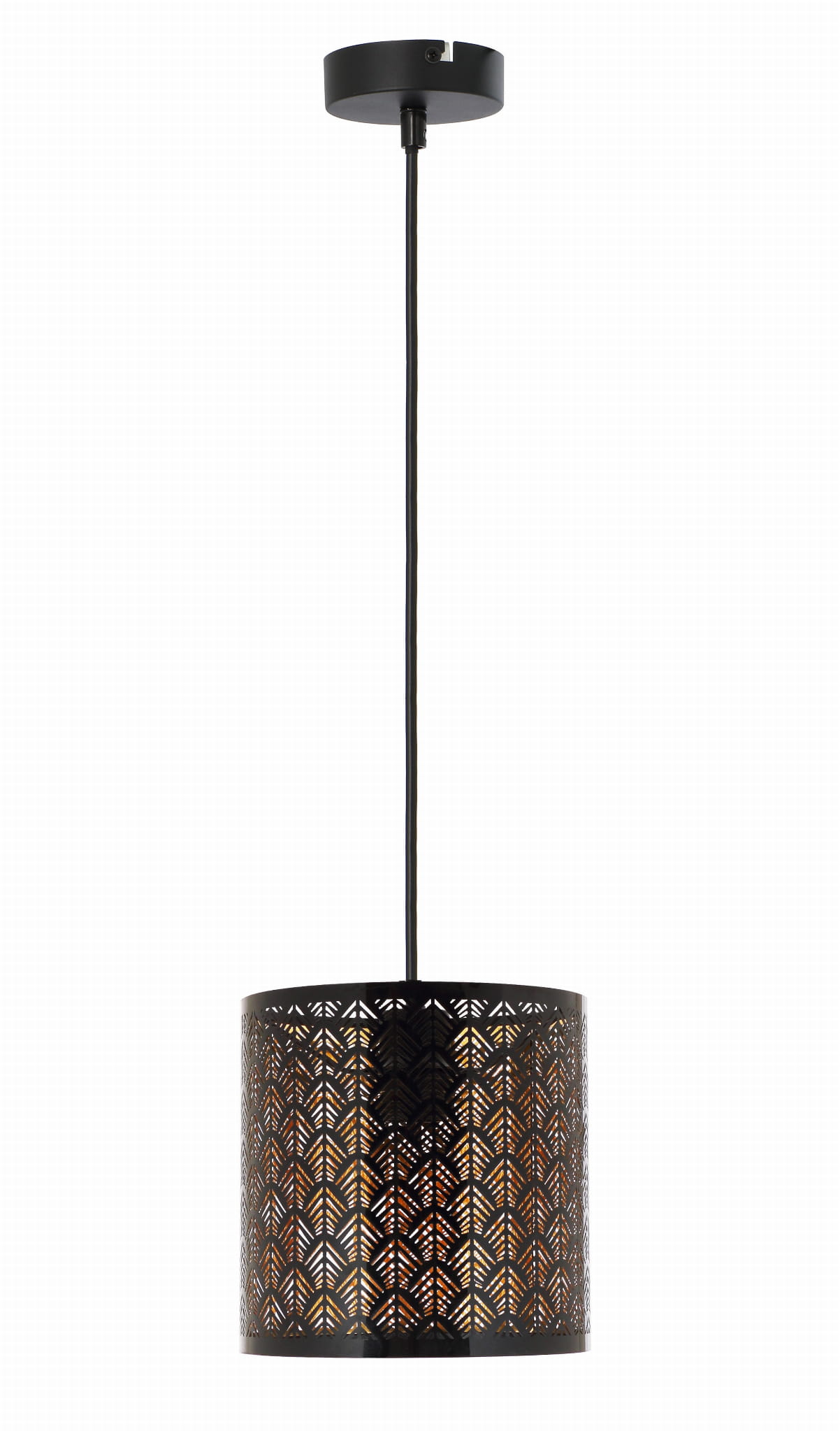 Tuluza - lampa wisząca 1 płomienna czarna. 1xE27 60W. Wysokość 25cm. Wysokość całkowita 80cm. Szerokość 20cm. Głębokość 20cm. Abażur czarny, wewnątrz złoty