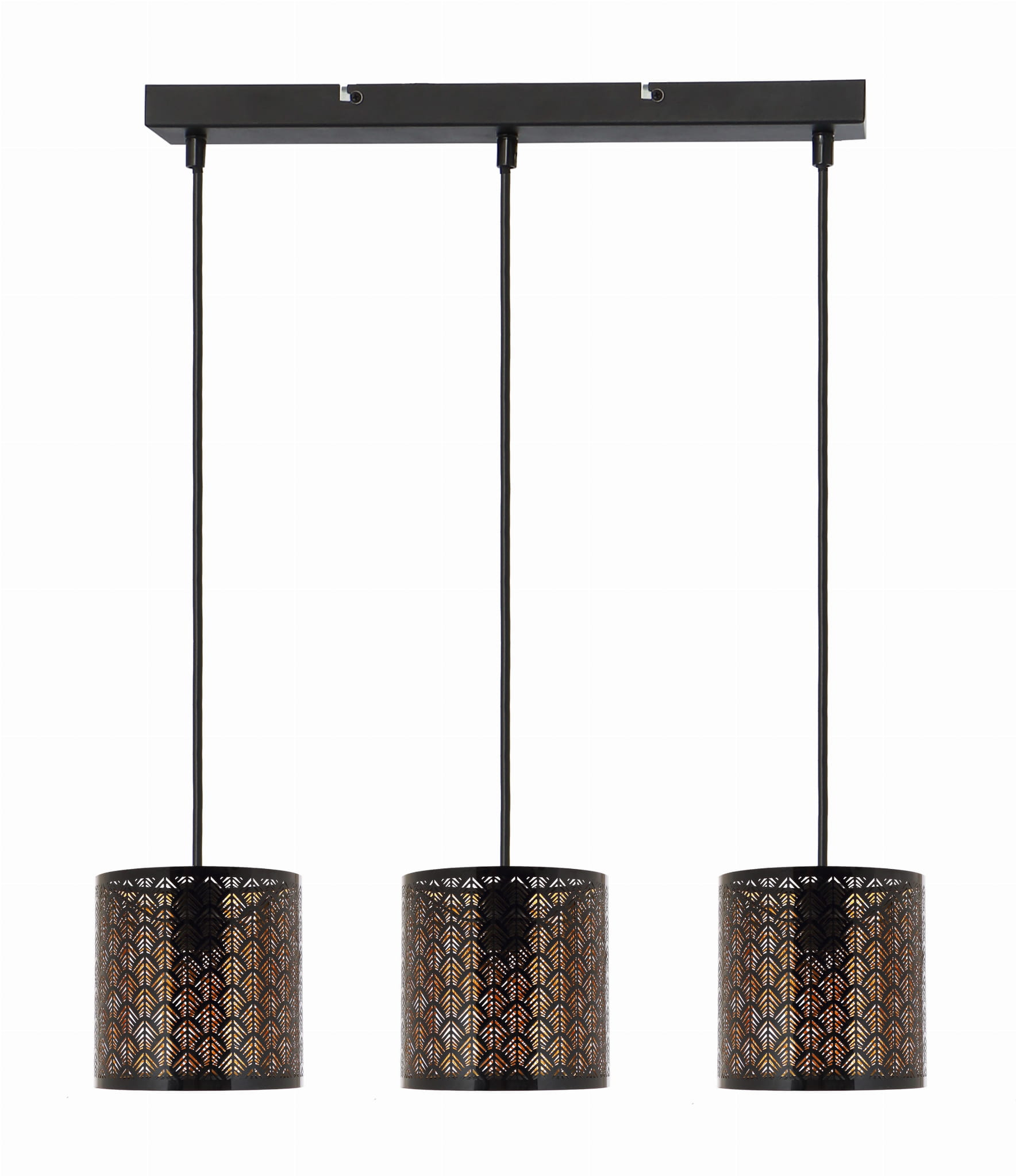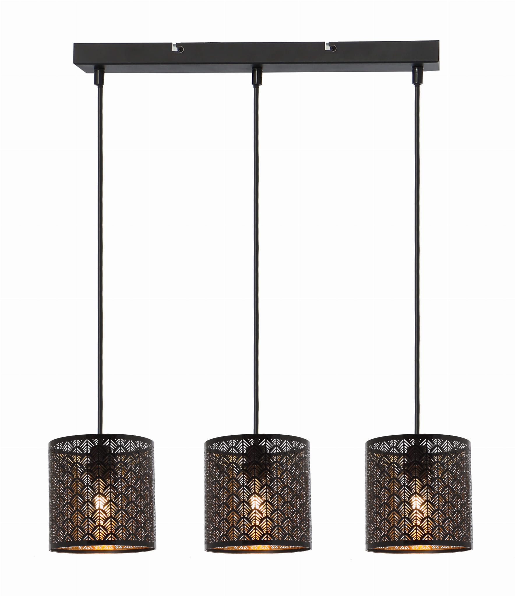 Tuluza - lampa wisząca 3 płomienna czarna. 3xE27 60W. Wysokość 105cm. Szerokość 75cm. Głębokość 20cm. Abażury czarne, wewnątrz złote